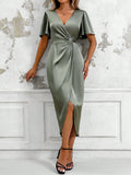 Effortless Chic: Solid Color Short Sleeve Dress for Daily Elegance
