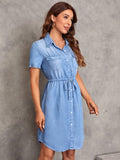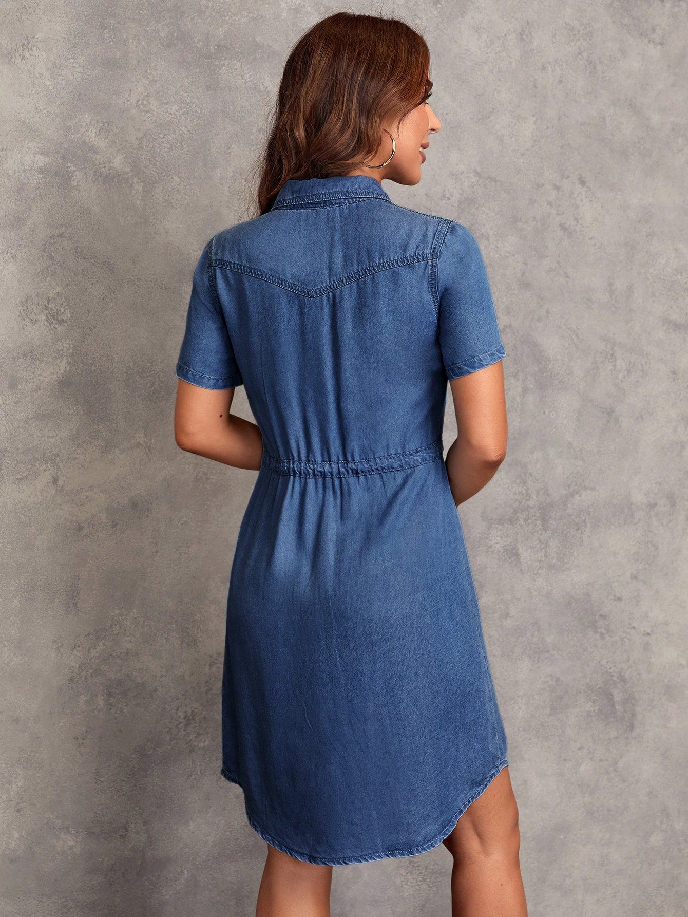 Effortlessly Chic: Women's Drawstring Waist Button Front Dress