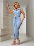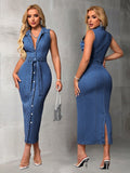 Effortlessly Sexy: Sleeveless Bodycon Denim Dress with Button Front