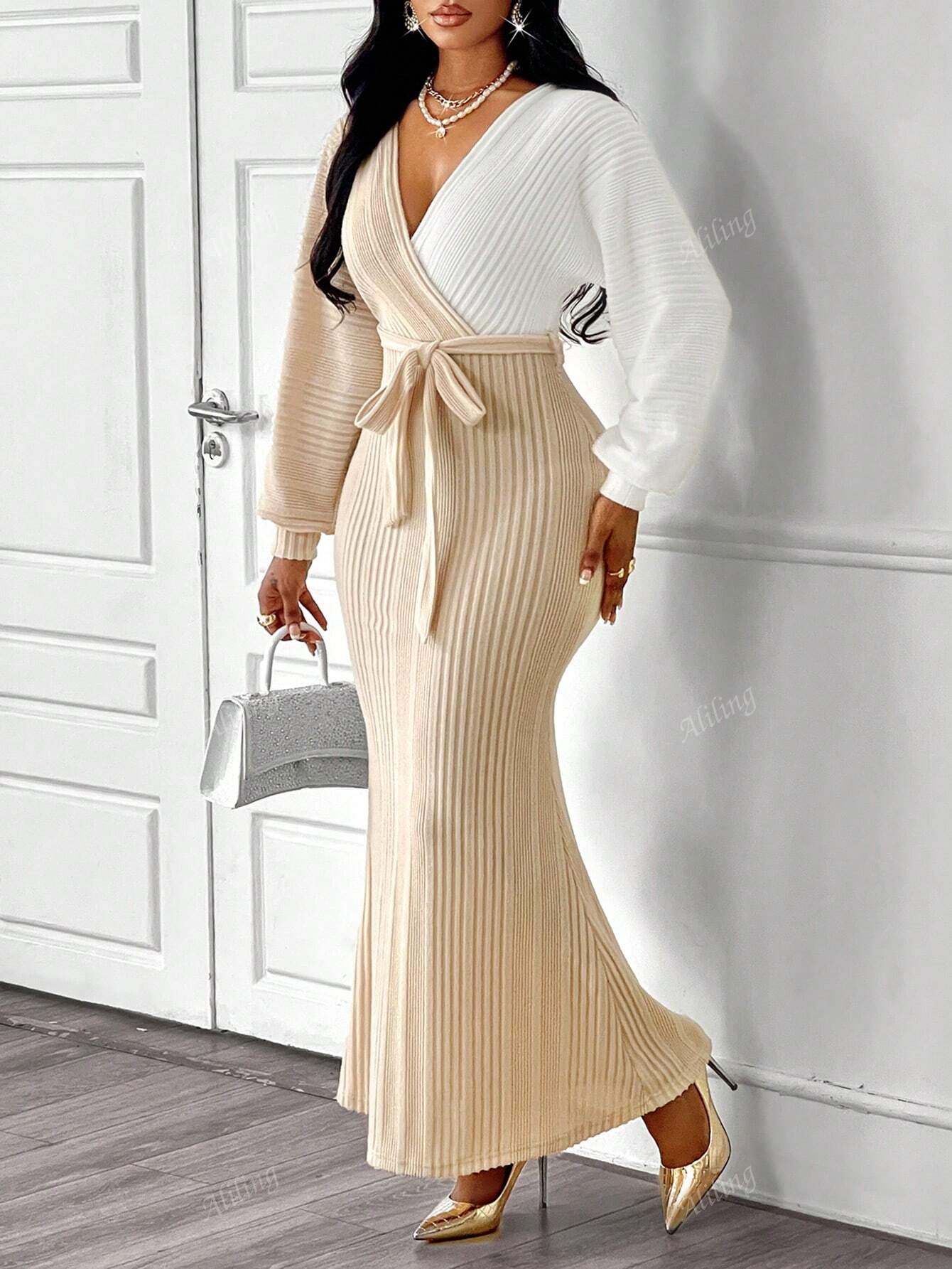 Elegance Defined: Two-Tone Batwing Sleeve Mermaid Dress