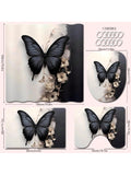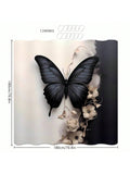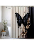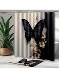 Elegance in Bloom: 3D Black & White Butterfly Flower Bathroom Shower Curtain Set with Hooks and Mat