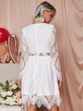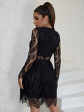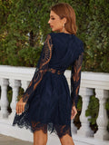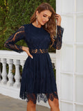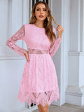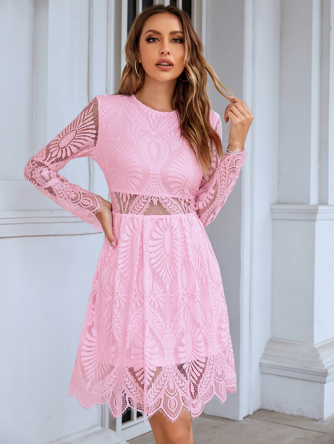 Elegant and Sophisticated with Sheer Insert Scallop Trim Lace Dress