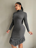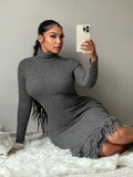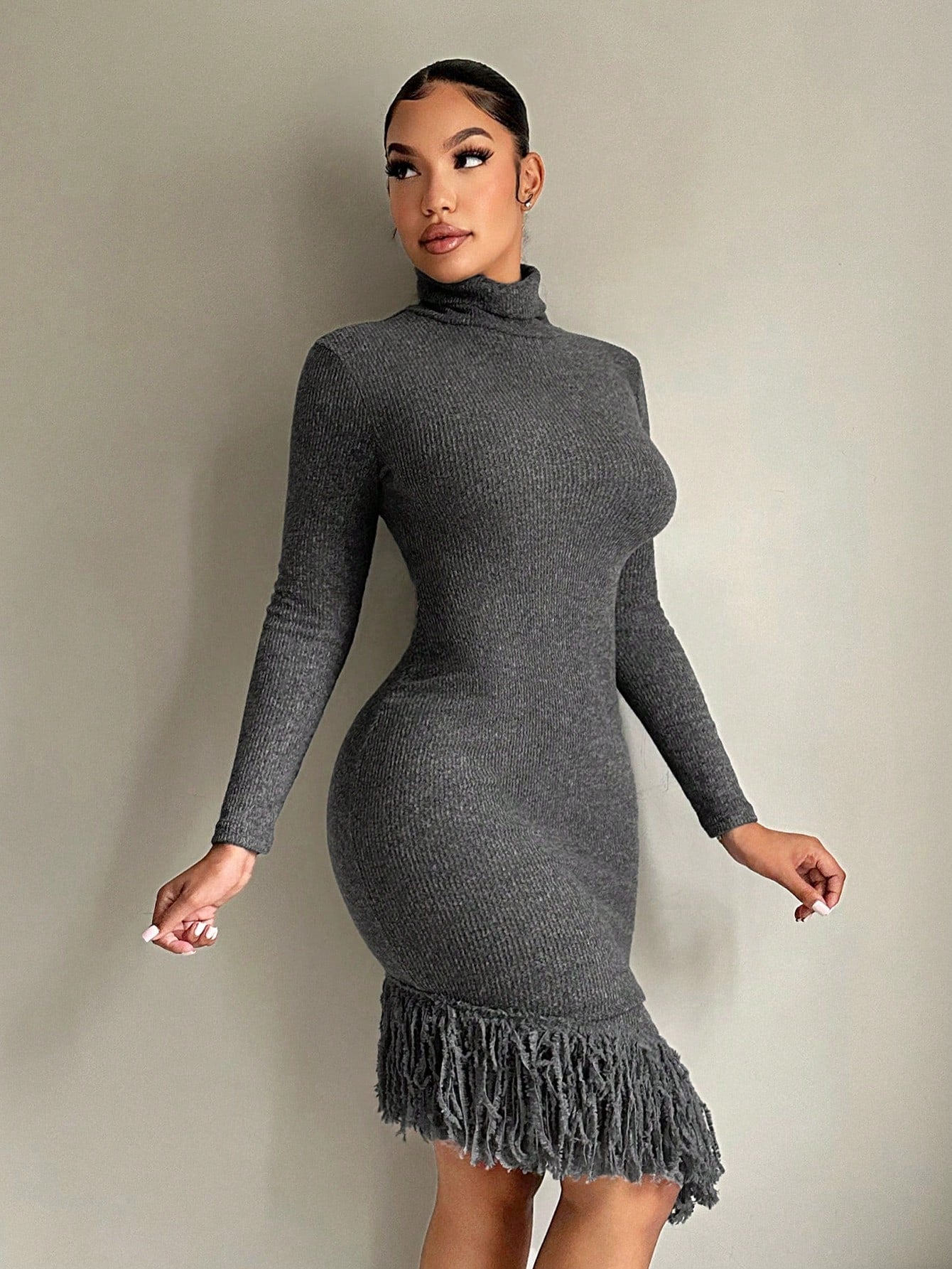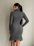 Elegant Asymmetrical High Neck Long Sleeve Dress - Perfect for Every Occasion