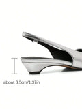 Elegant Bow Knot Pointed Closed Toe Kitten Heels Slingback Pumps for Wedding and Bridal Fashion
