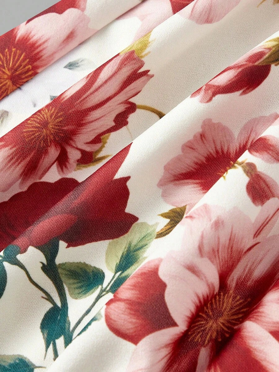 Elegant Floral Print Ruched Waist Mini Dress for Women - Perfect for Valentine's Day, Weddings, and Spring Events