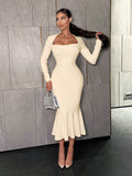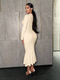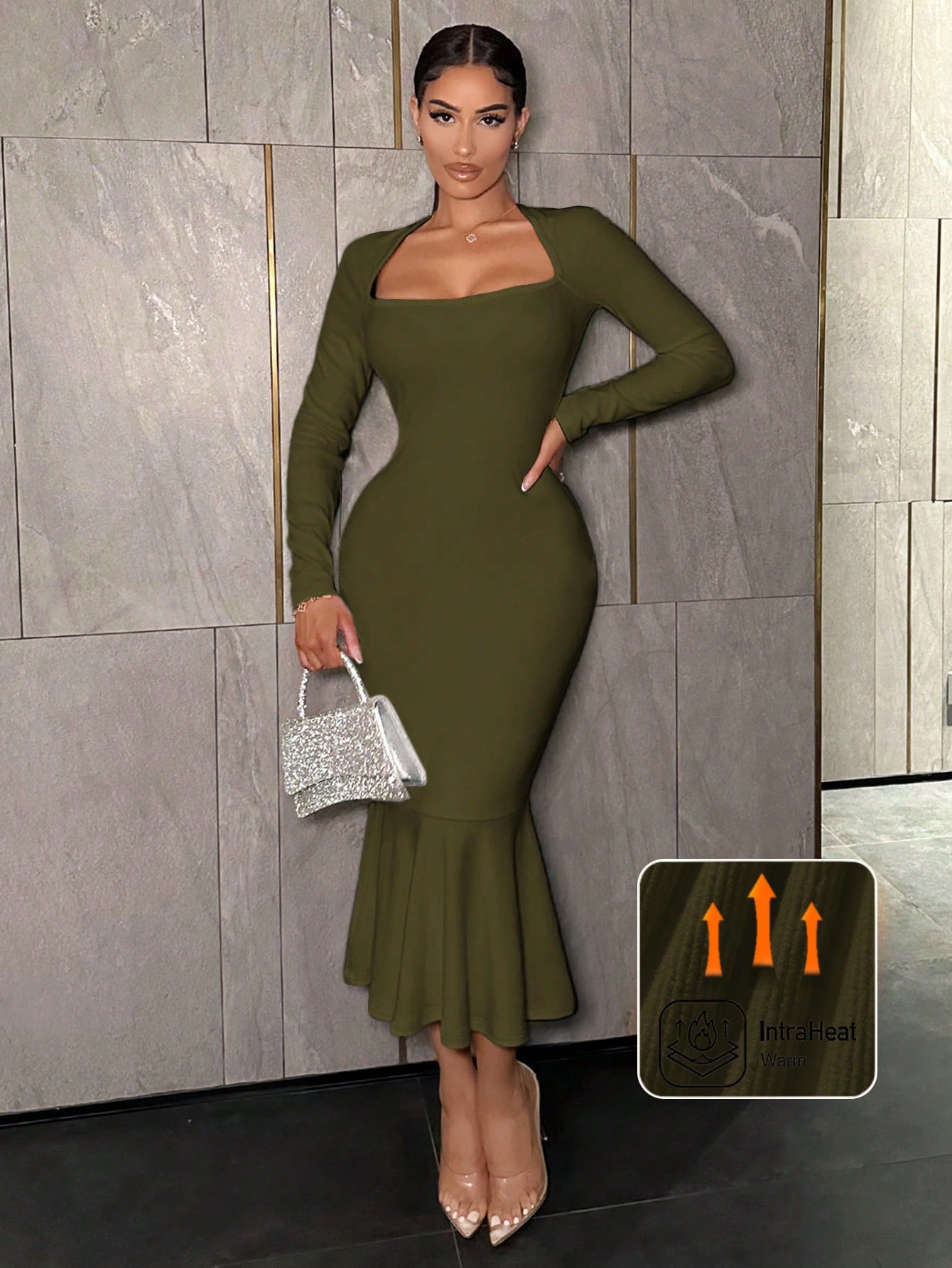Elegant Fuzzy Mermaid Midi Dress for Women - Cozy Chic Style