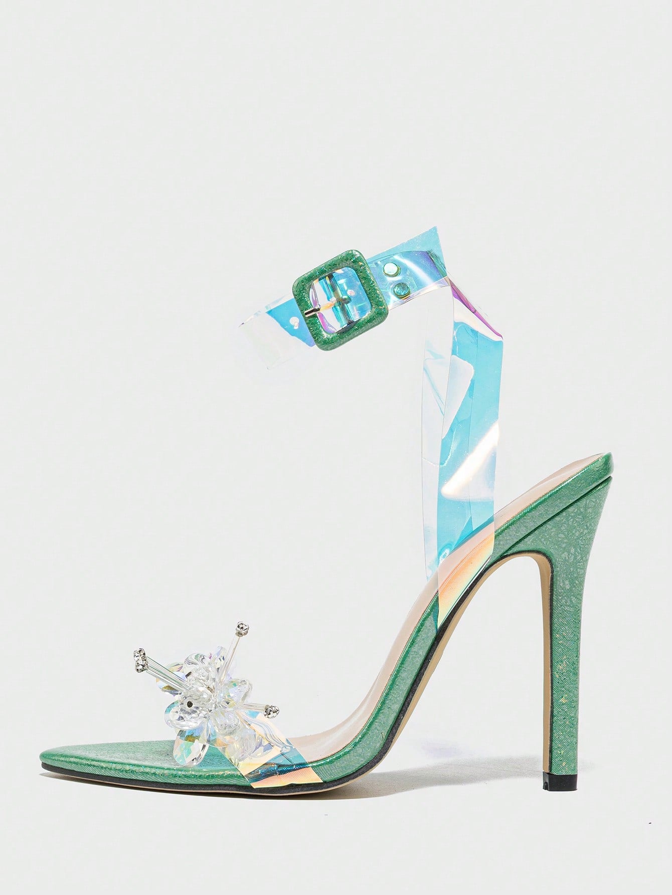 Elegant Green High-Heeled Floral Sandals for Night Clubs and Outdoor Events