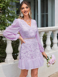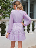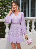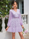 Elegant Lace Patchwork Lantern Sleeve Dress for Women - Perfect for Any Occasion