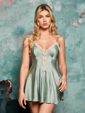 Elegant Lace-Trim Satin Pajama Nightdress – Perfect Blend of Comfort and Style