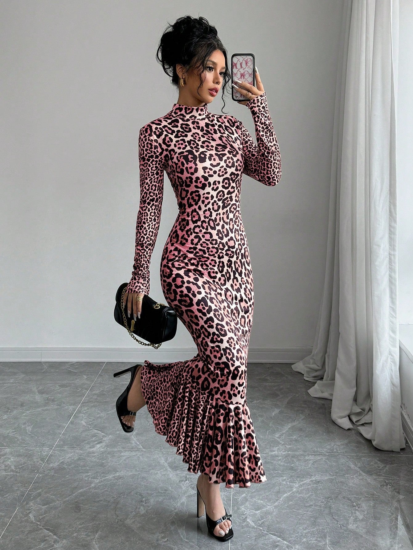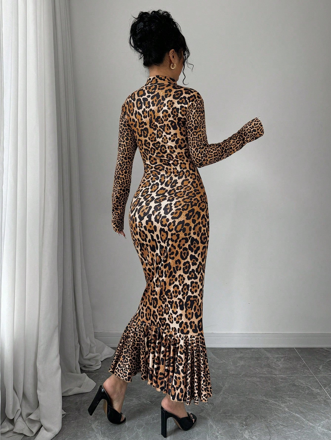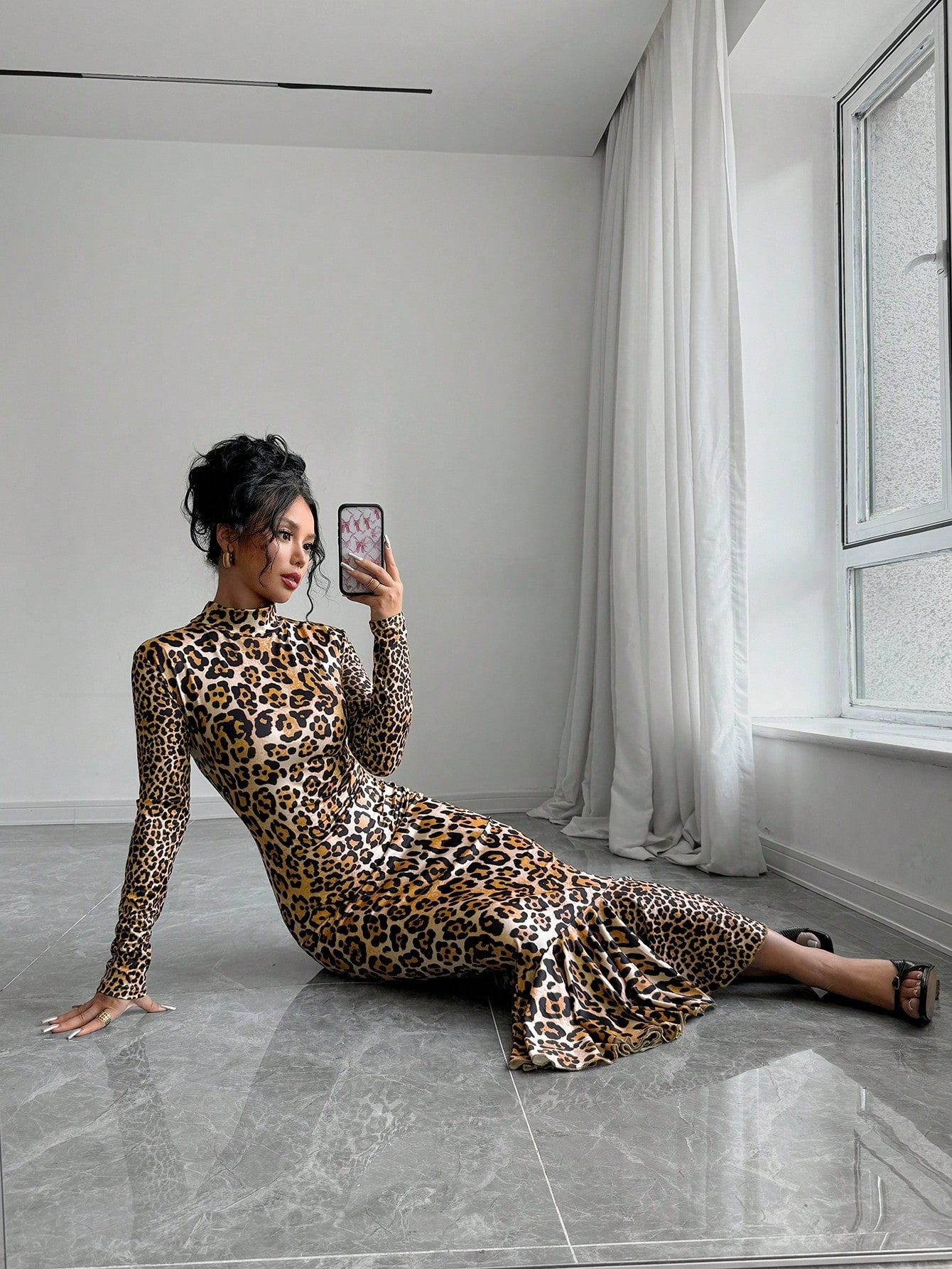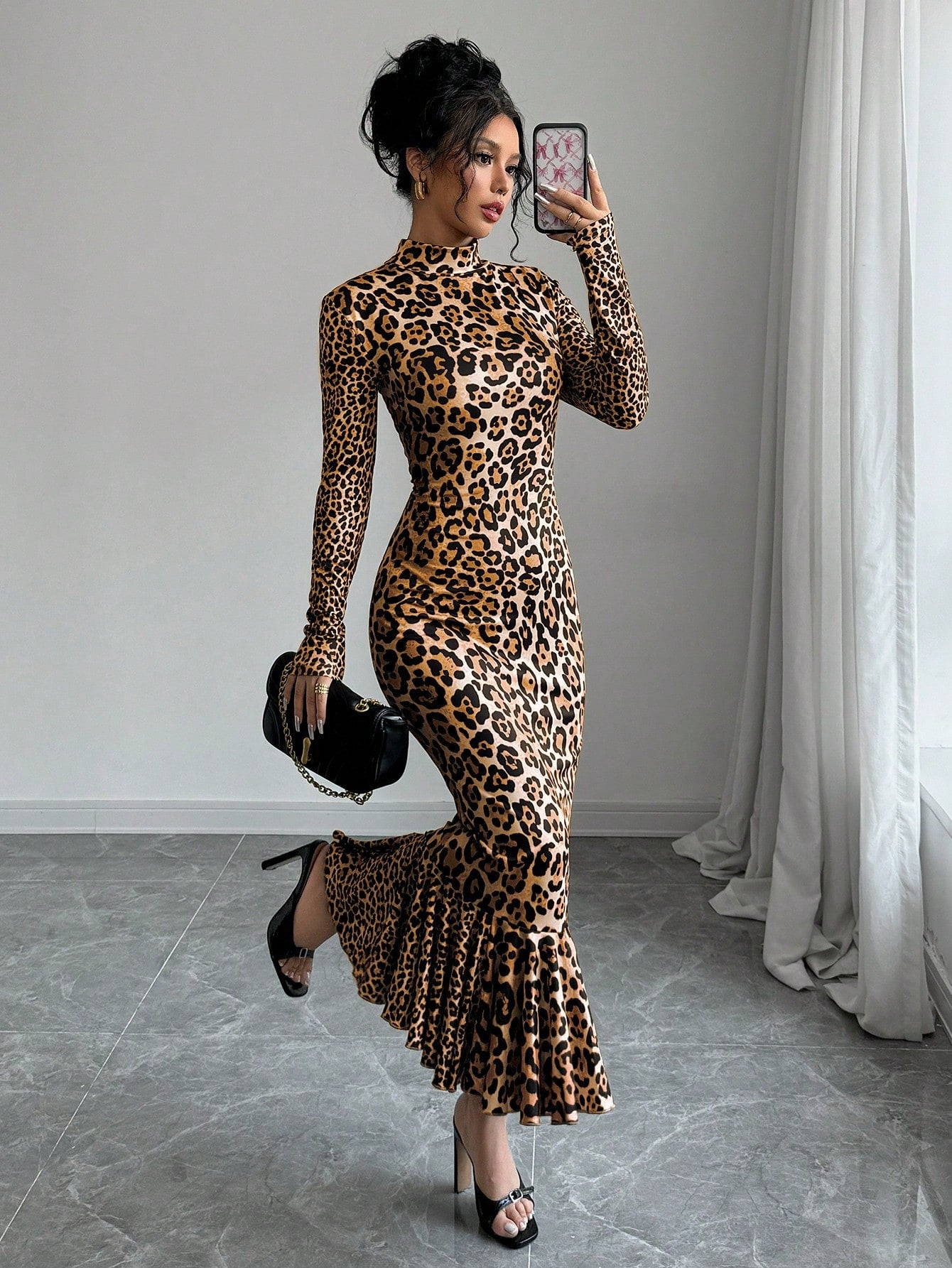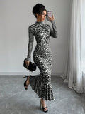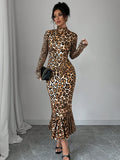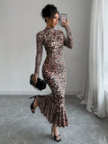 Elegant Leopard Print Mermaid Dress - Perfect for Autumn & Winter
