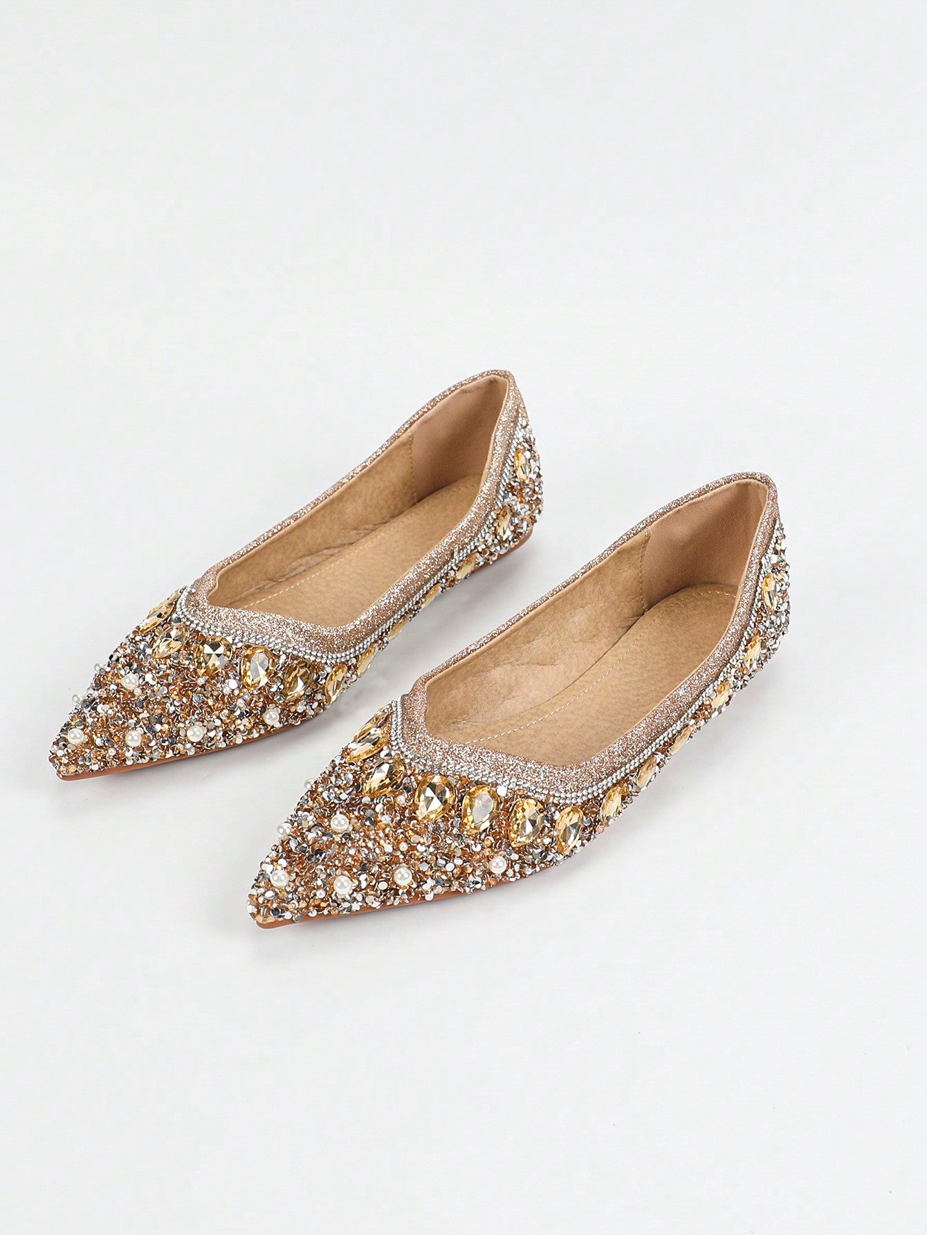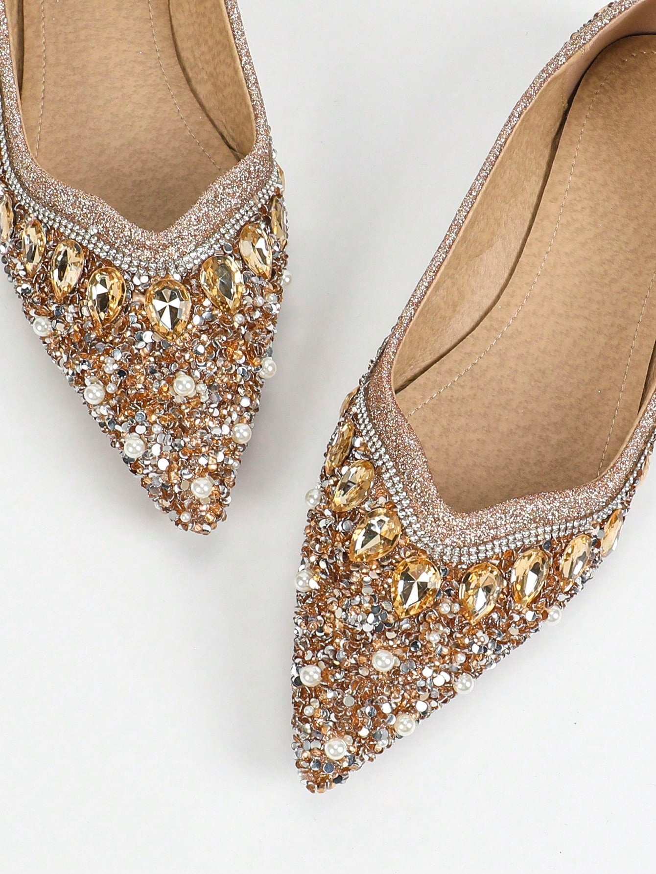 Elegant Luxe Crystal Pearl Flat Shoes - Perfect for Parties & Banquets in Champagne Color