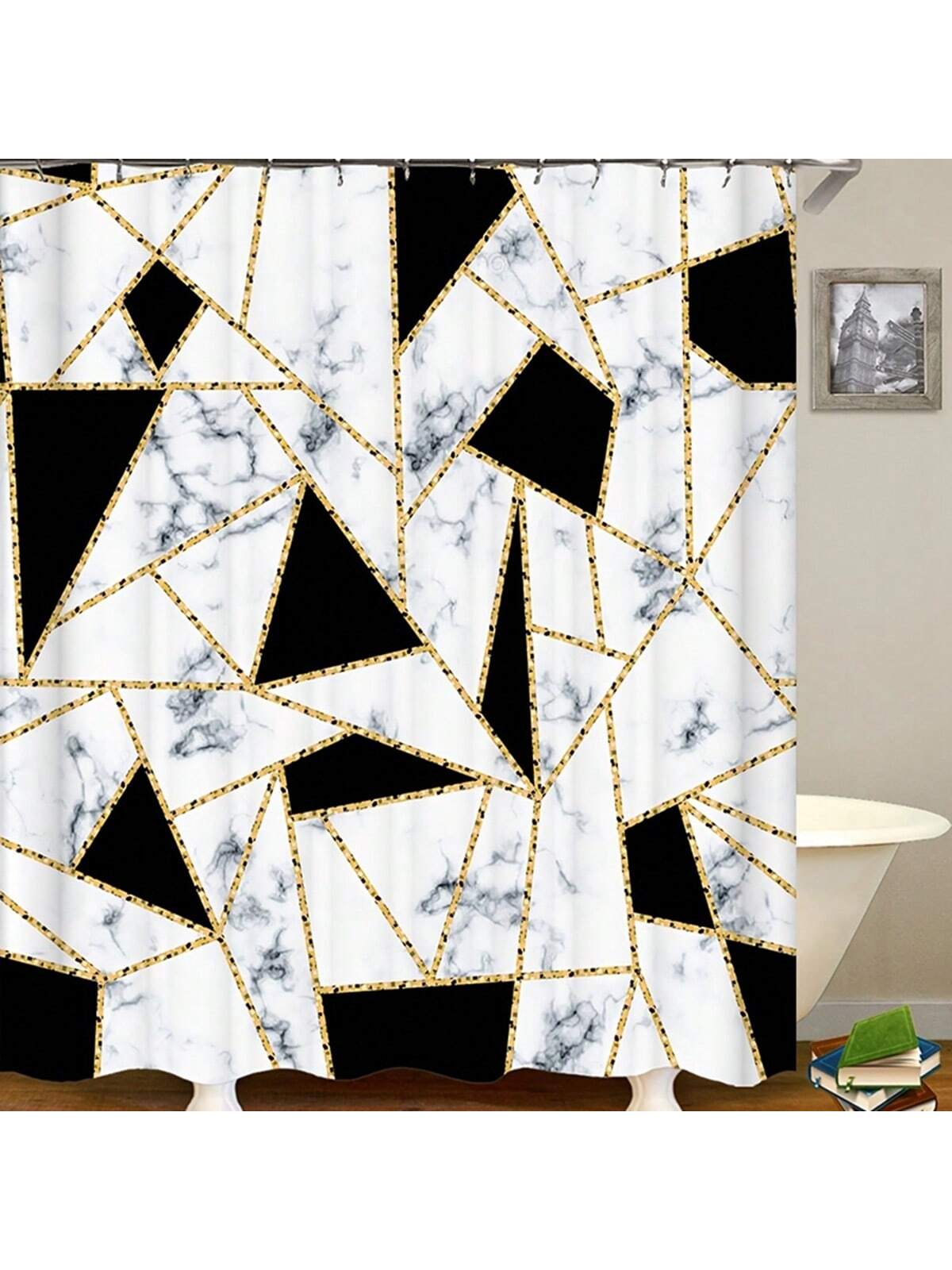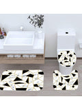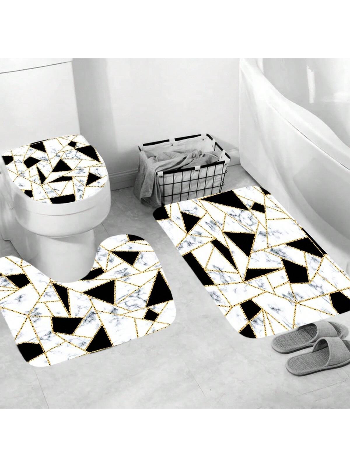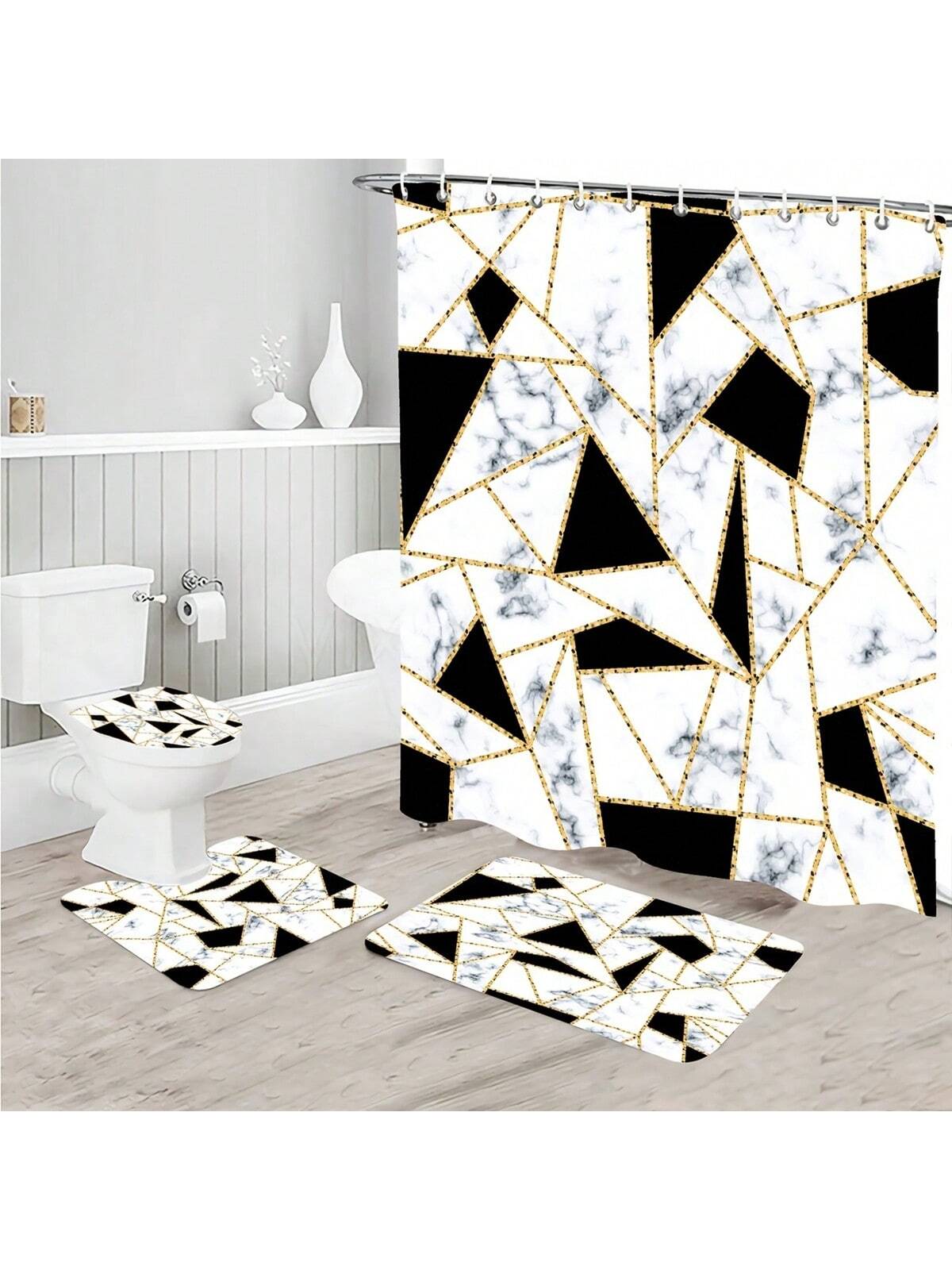 Elegant Marble Triangle Shower Curtain Set with Non-Slip Rug and Toilet Lid Cover