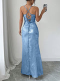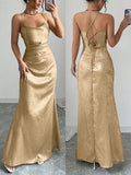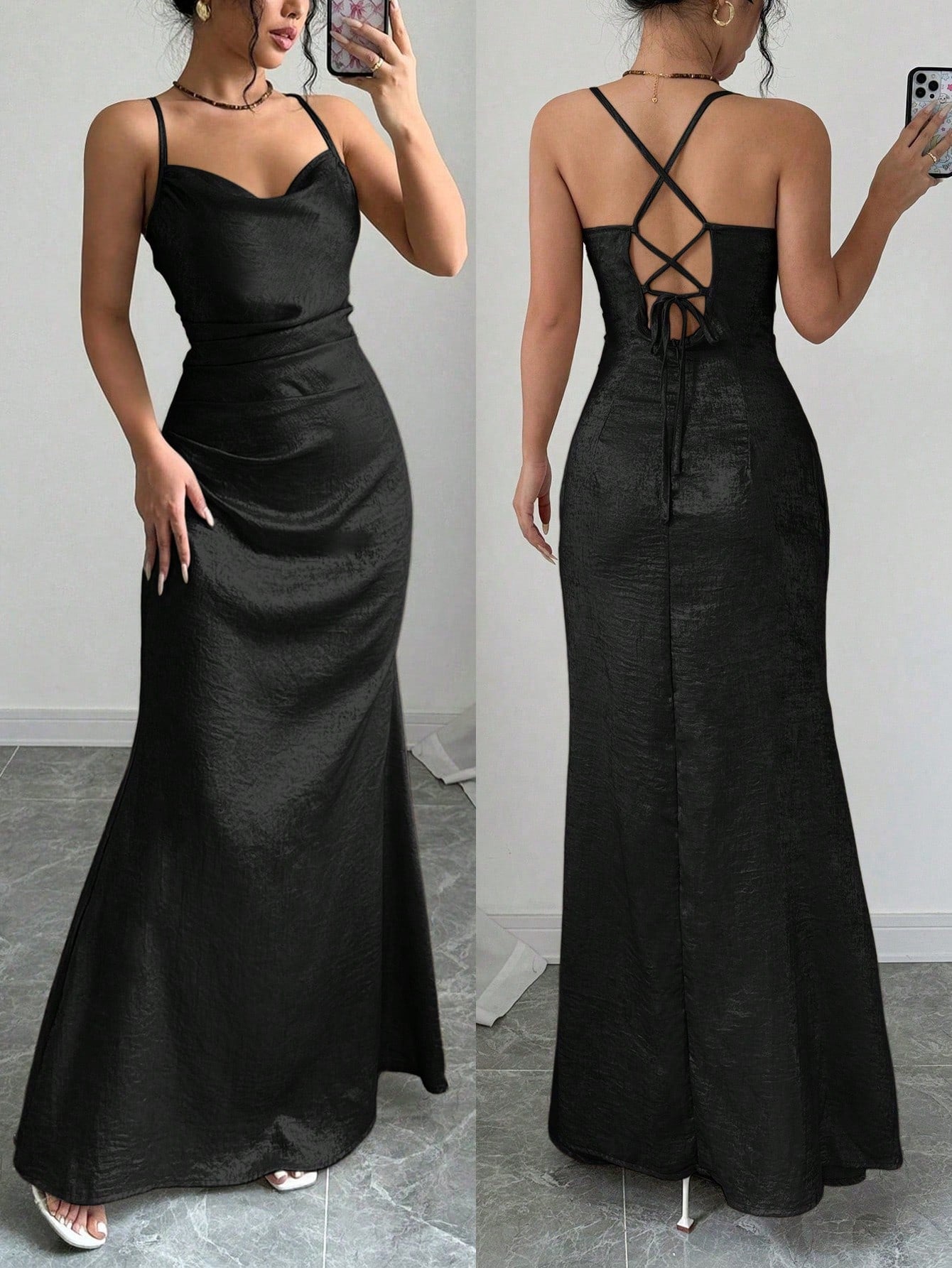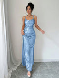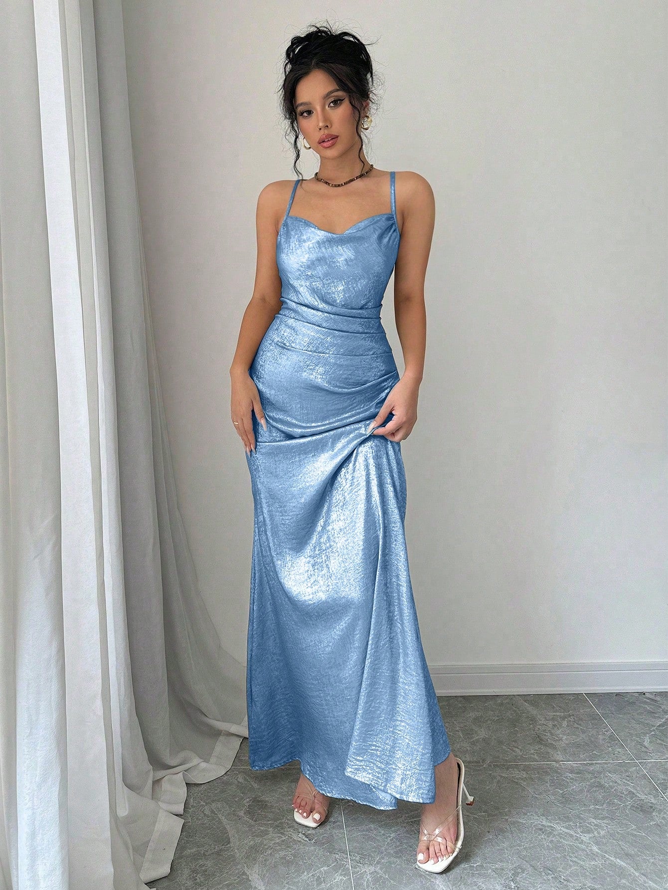 Elegant Metallic Draped Neck Sling Dress - Perfect for Parties