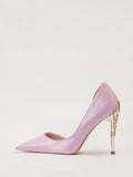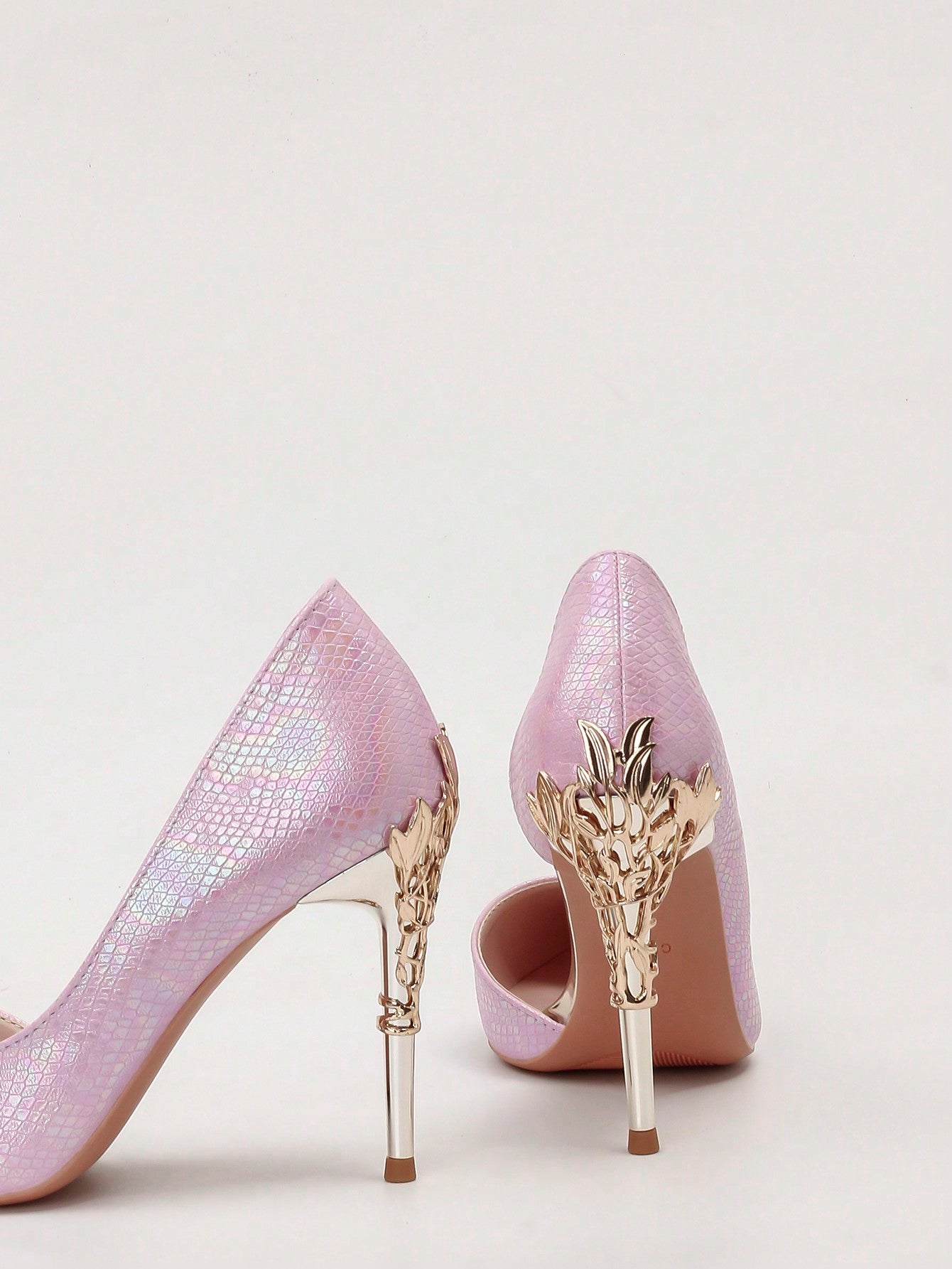 Elegant Metallic Floral Cutout Stilettos: Chic Pointed Toe Heels for Weddings & Special Occasions