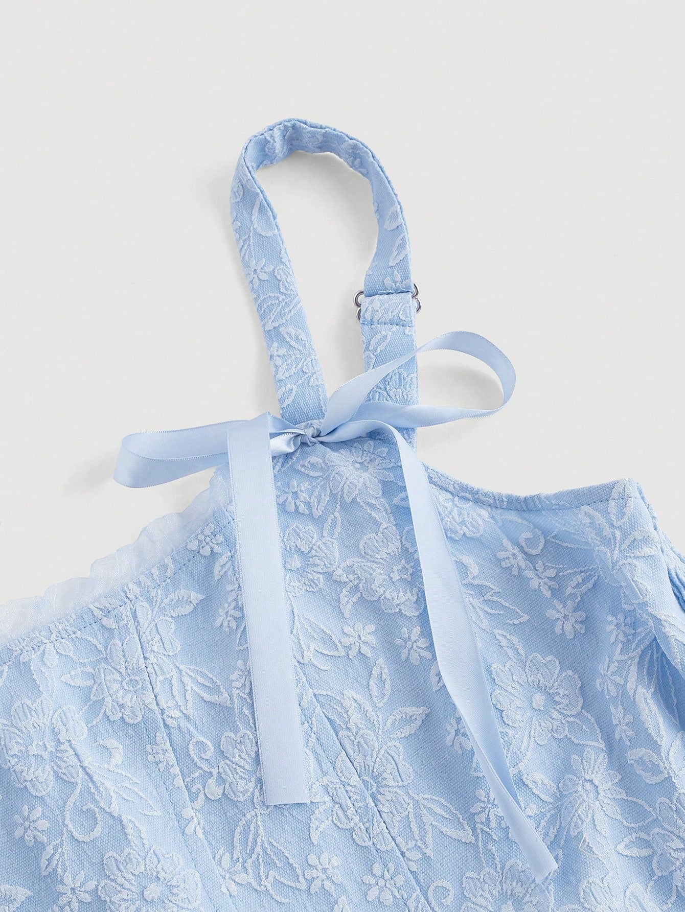 Elegant Plus Size Summer Spaghetti Strap Dress with Bowknot Detail