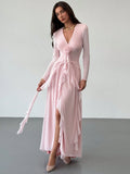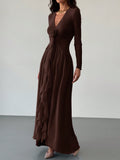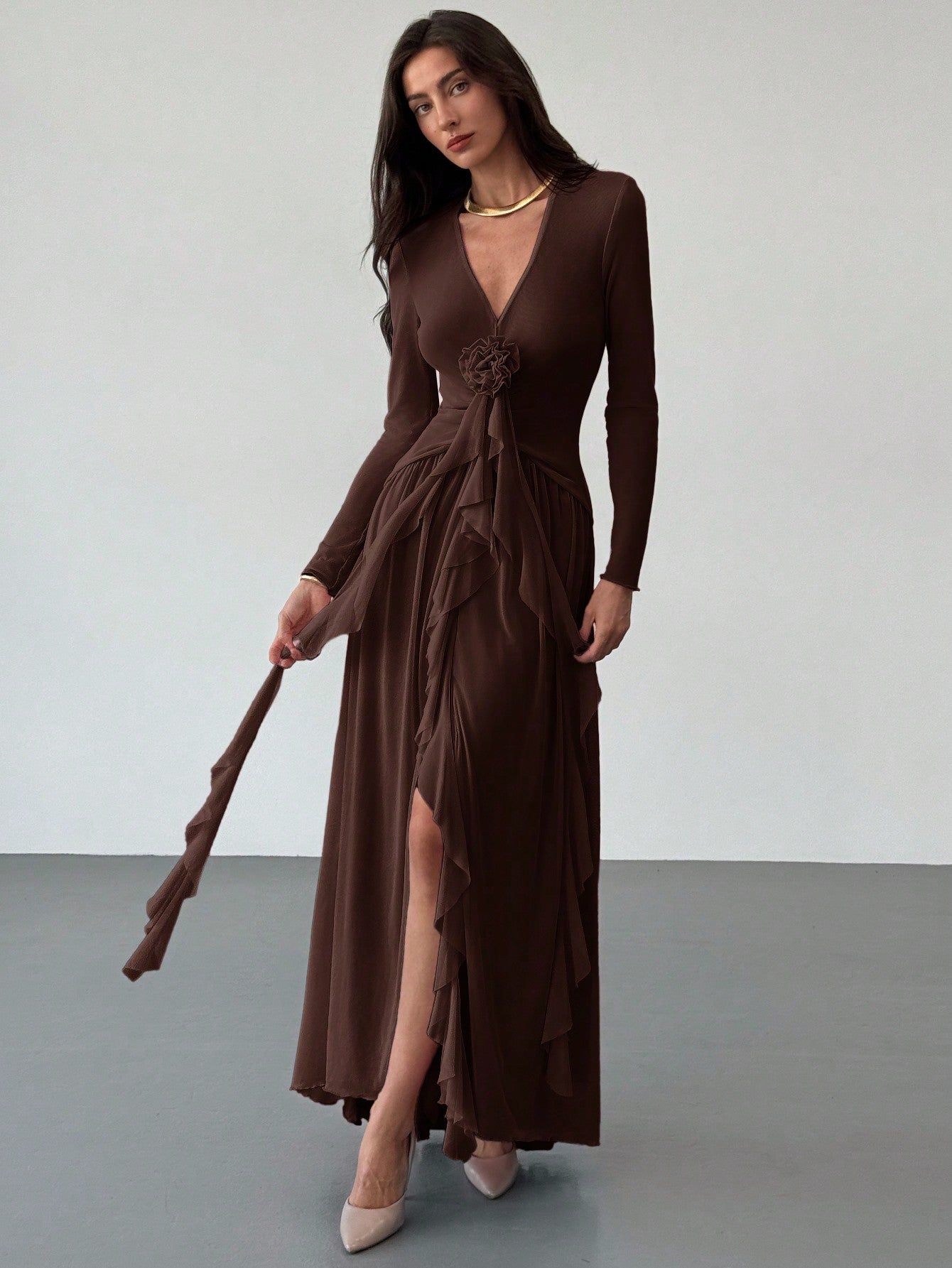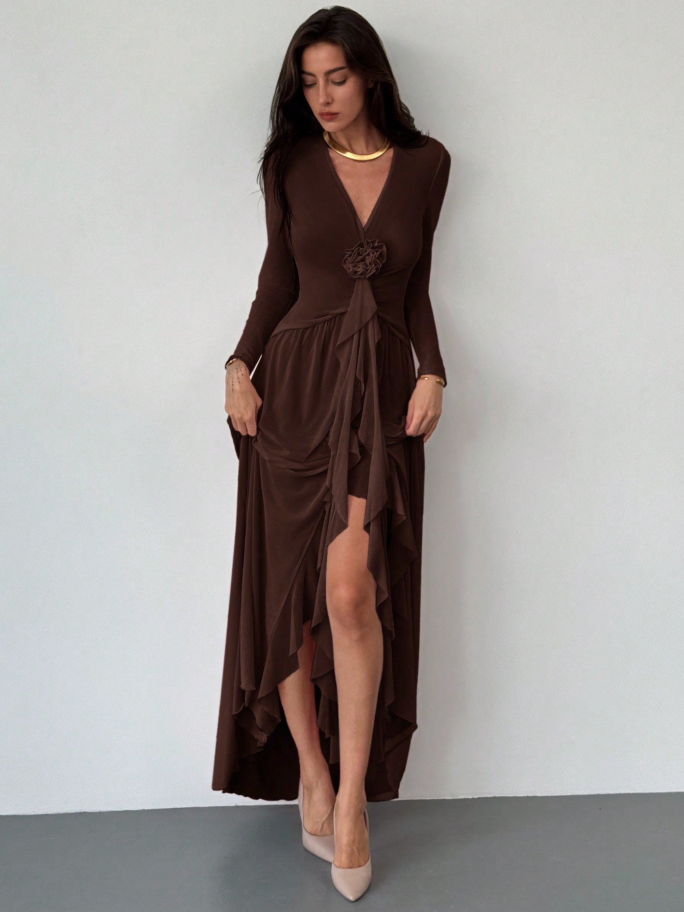 Elegant Ruffled Floral Plunge V-Neck Sheer Dress - Unleash Your Inner Romance!