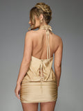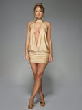 Elegant Satin Plunge Wrap Mini Dress with Ruched Waist & Cut-Out Detail