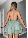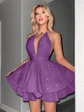 Elegant Shiny Deep V-Neck Ruffle Hem Dress - Perfect for Any Occasion