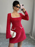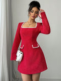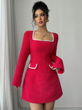 Elegant Solid Color Patchwork Embroidery Square Neck Dress for Women