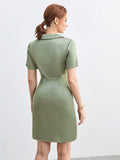 As a product expert, I present to you our Elegant Solid Ruched Side Wrap Hem Dress for Stylish Workwear. With its elegant design and ruched side wrap hem, this dress is perfect for stylish workwear. Made with high-quality materials, it offers both style and comfort, making it a must-have for business professionals.