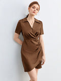 Elegant Solid Ruched Side Wrap Hem Dress for Stylish Workwear