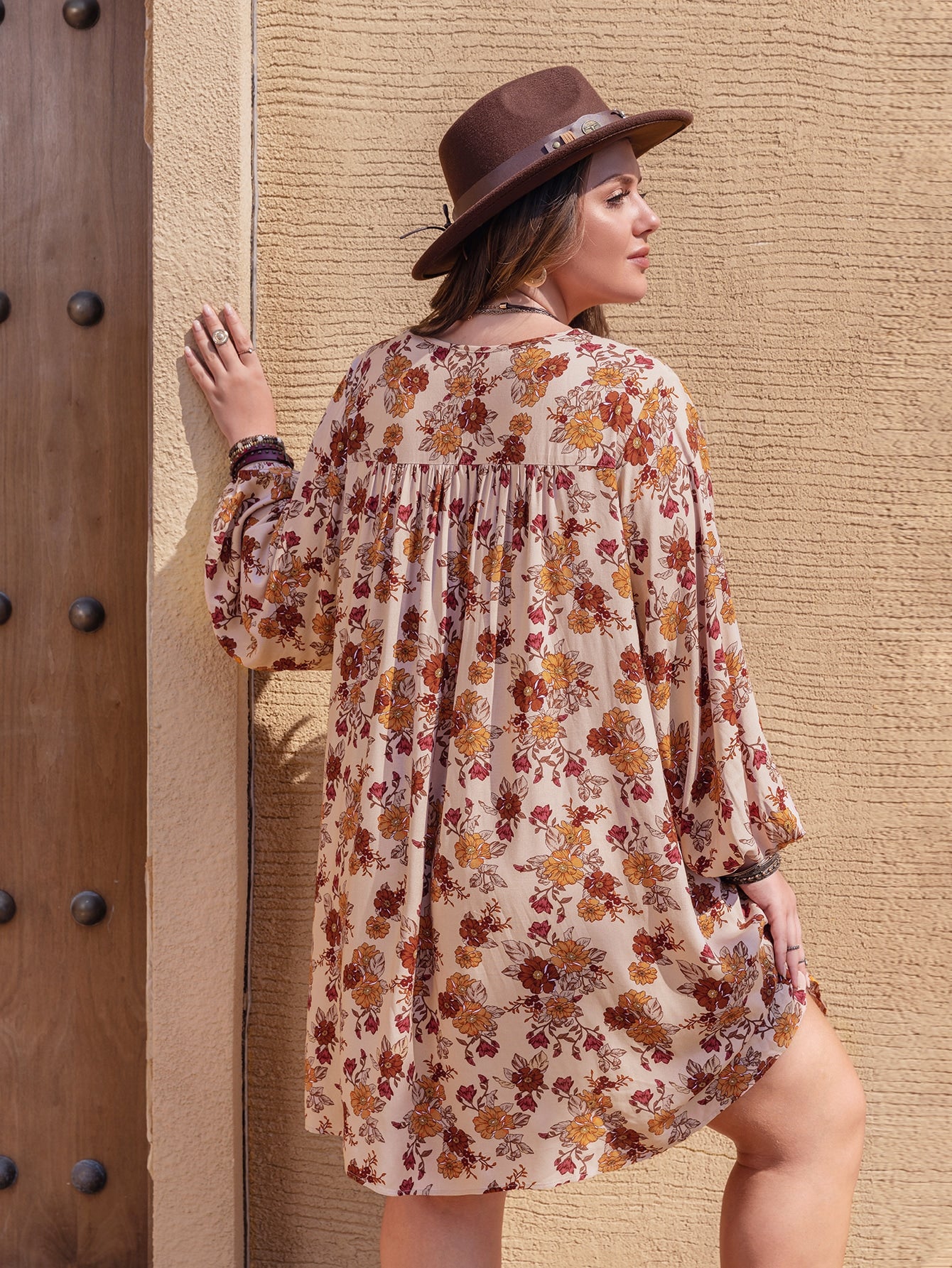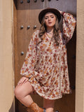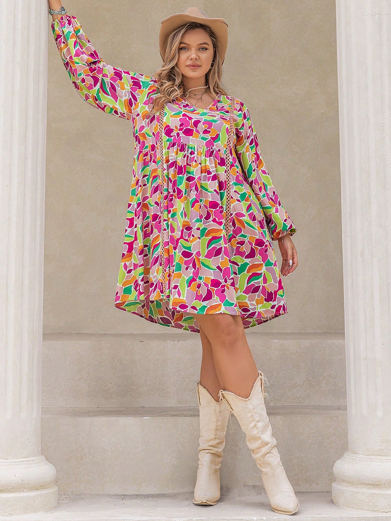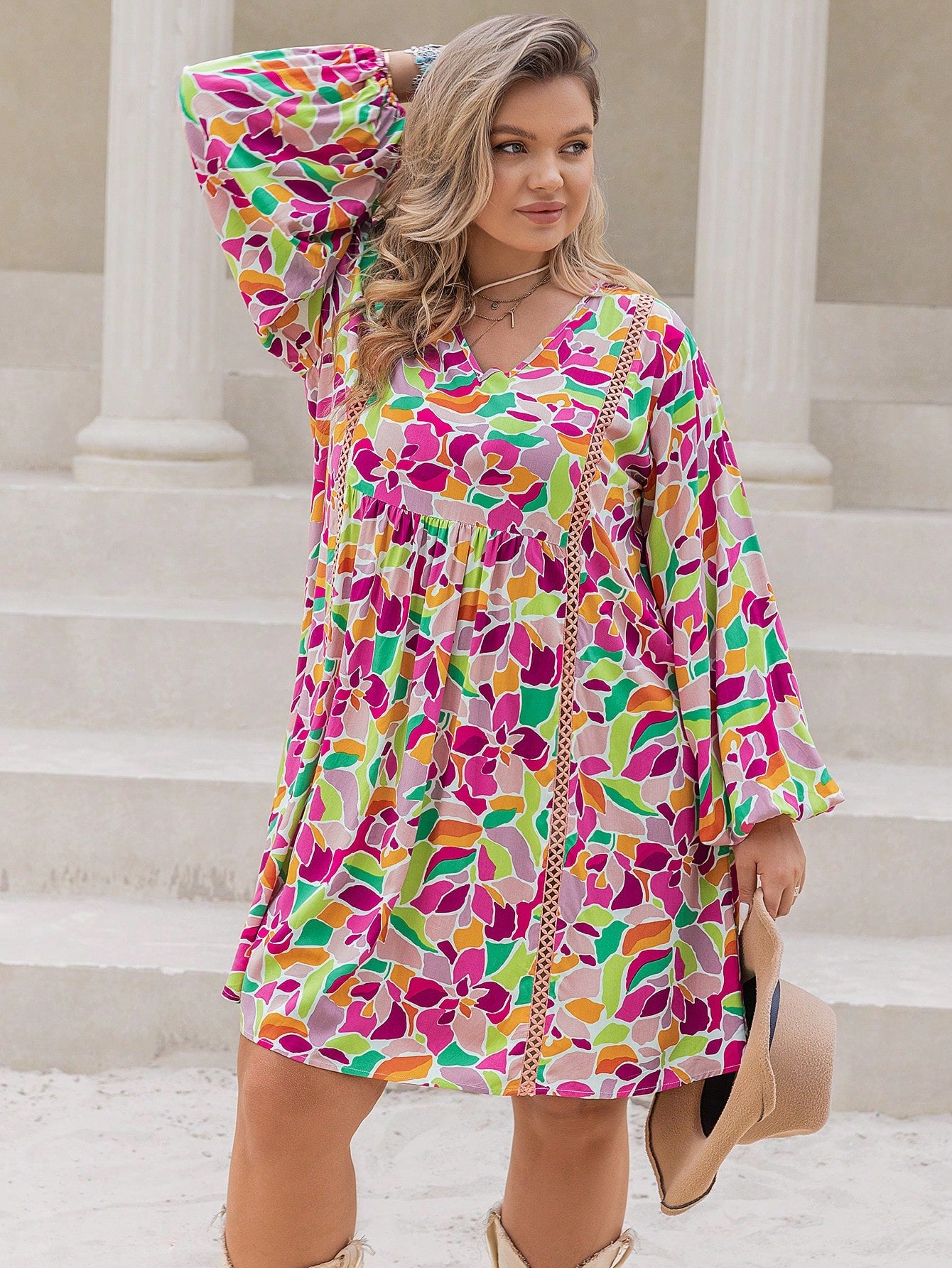 Embrace Your Curves in Style with Plus Size Geometric Printed Lantern Sleeve Dress