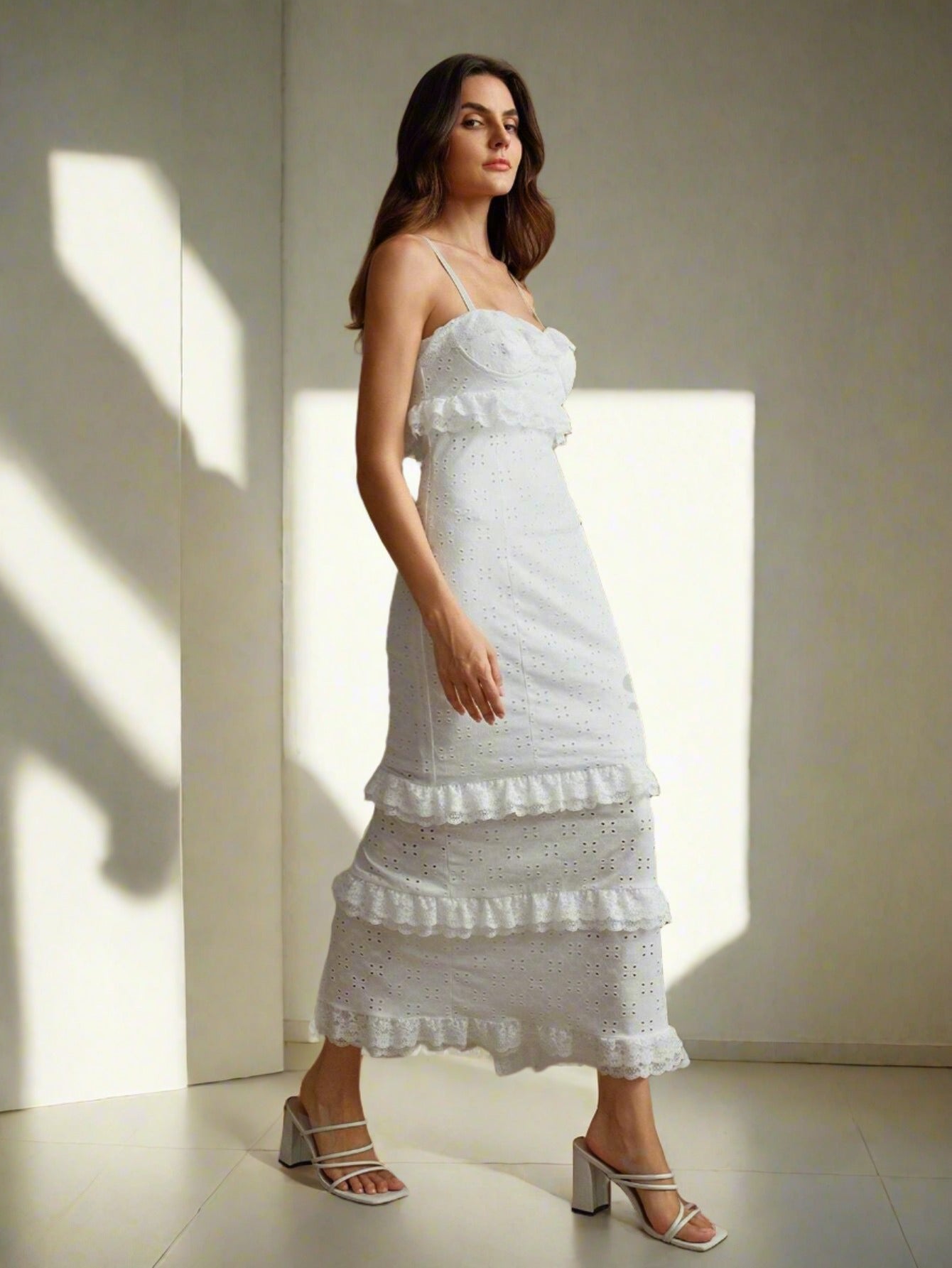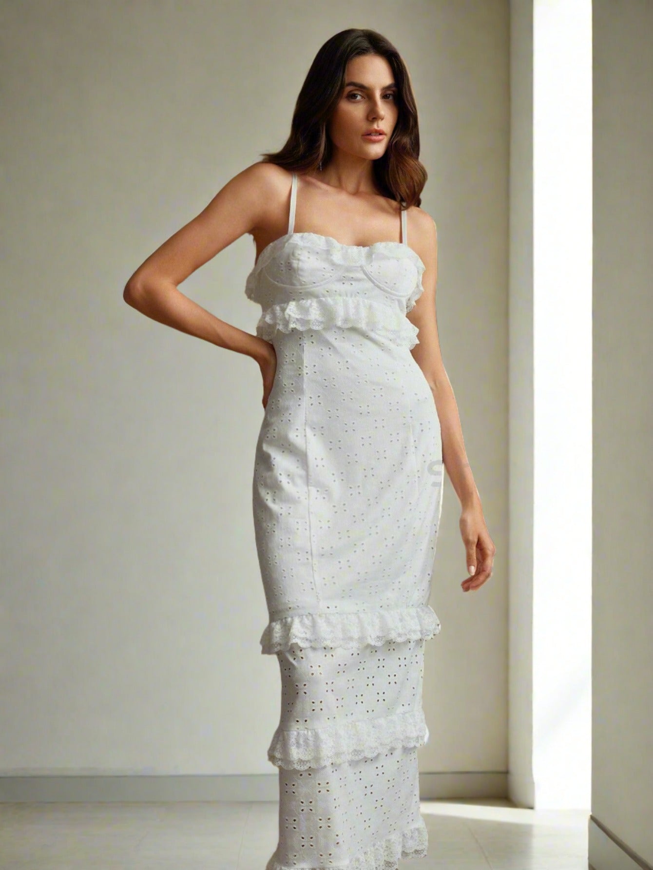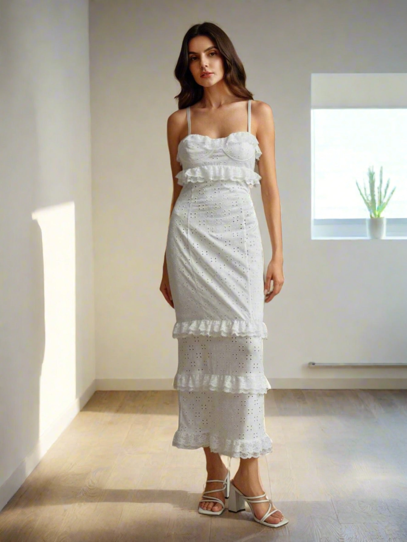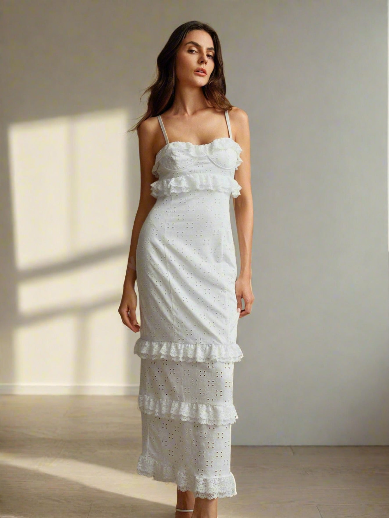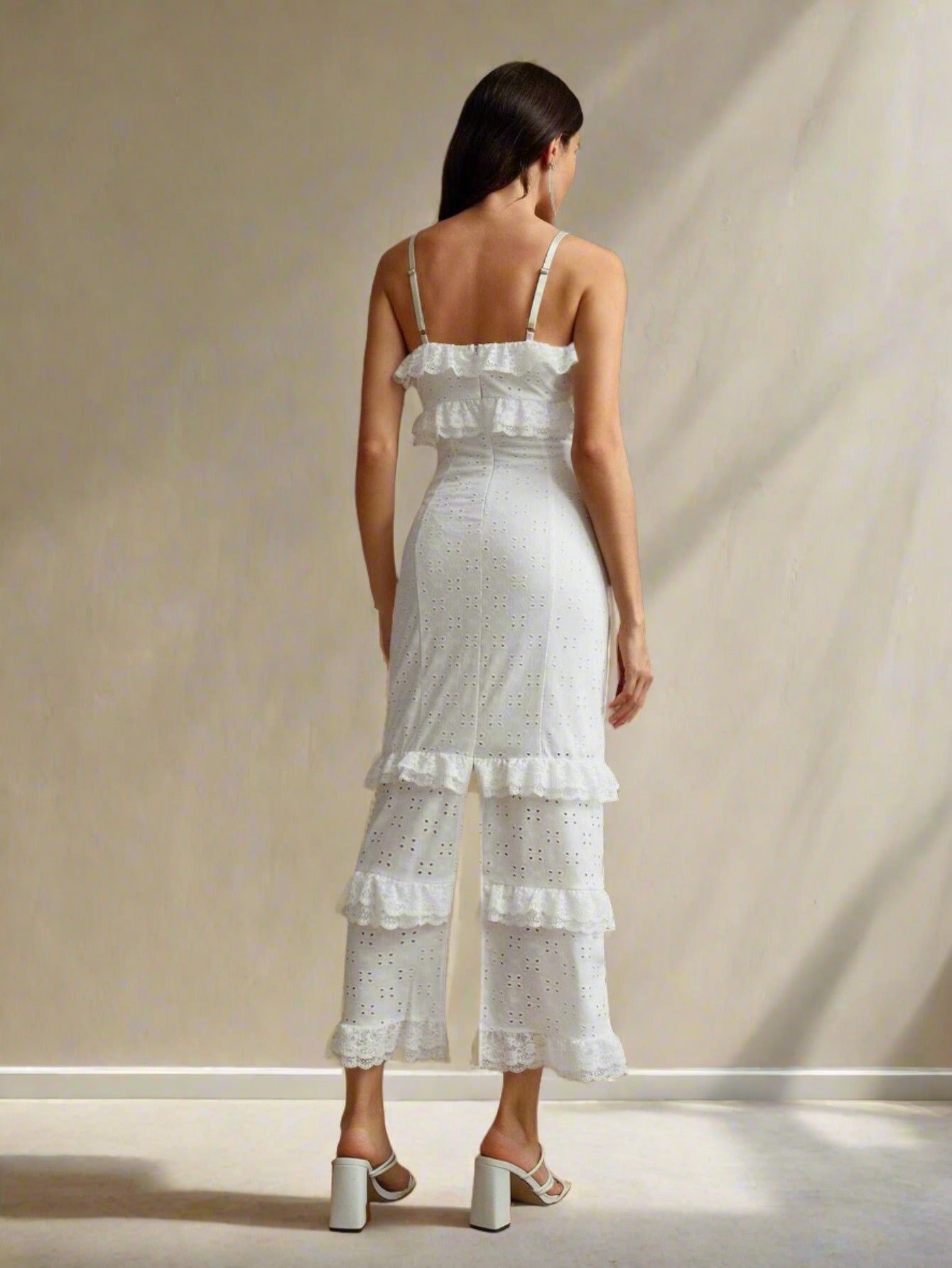 Enchanting Elegance: Anewsta White Lace-Trimmed Slit Cami Cake Dress