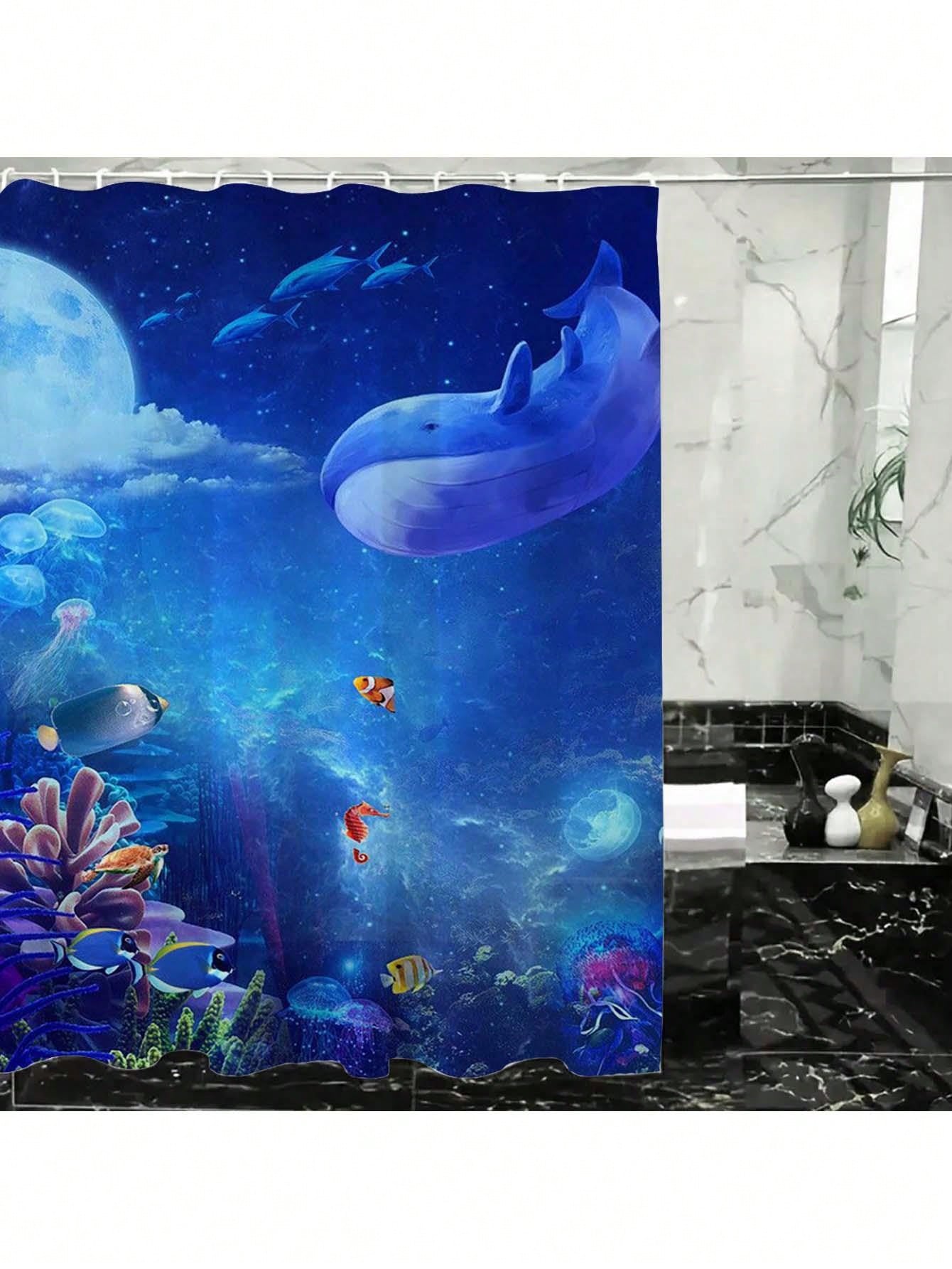 Enchanting Underwater World Shower Curtain - Waterproof & Washable with Sheen Effect for Stylish Bathroom Decor