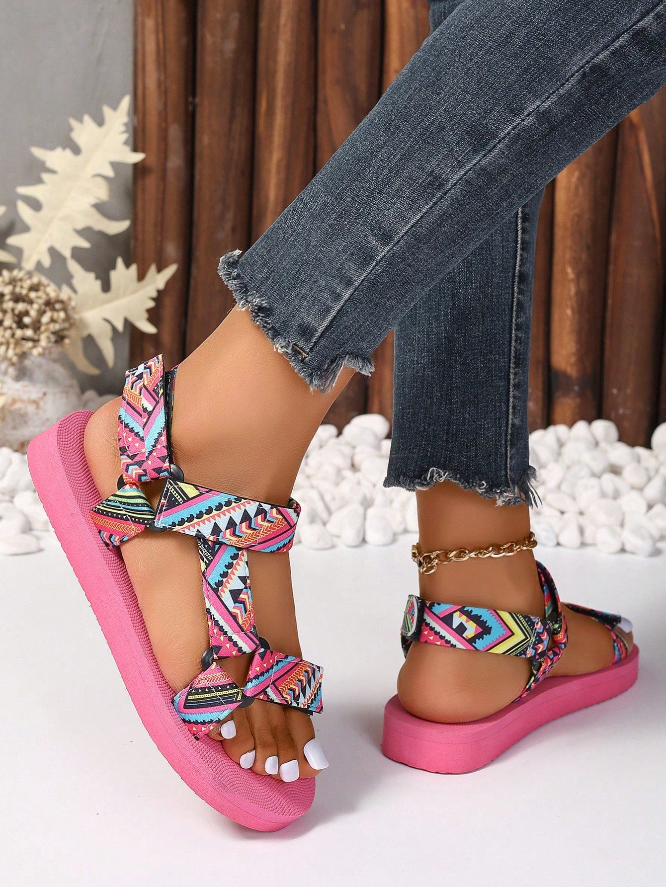 Elevate your summer wardrobe with these Euro-American style platform sport sandals. Featuring a unique design and elevated platform, these sandals will add a touch of fashion and comfort to your summer look. Say goodbye to boring sandals and step up your summer style with these must-have sandals.