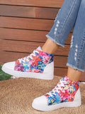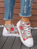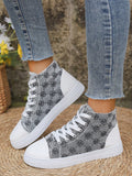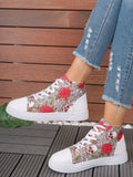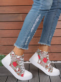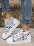 European Style Plus Size 3D Printed High Top Sneakers in White