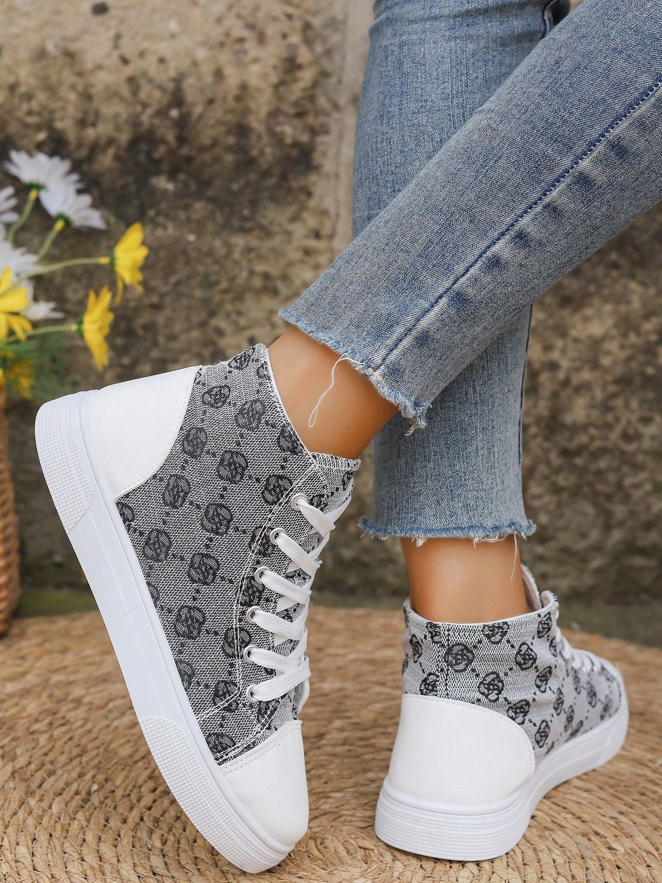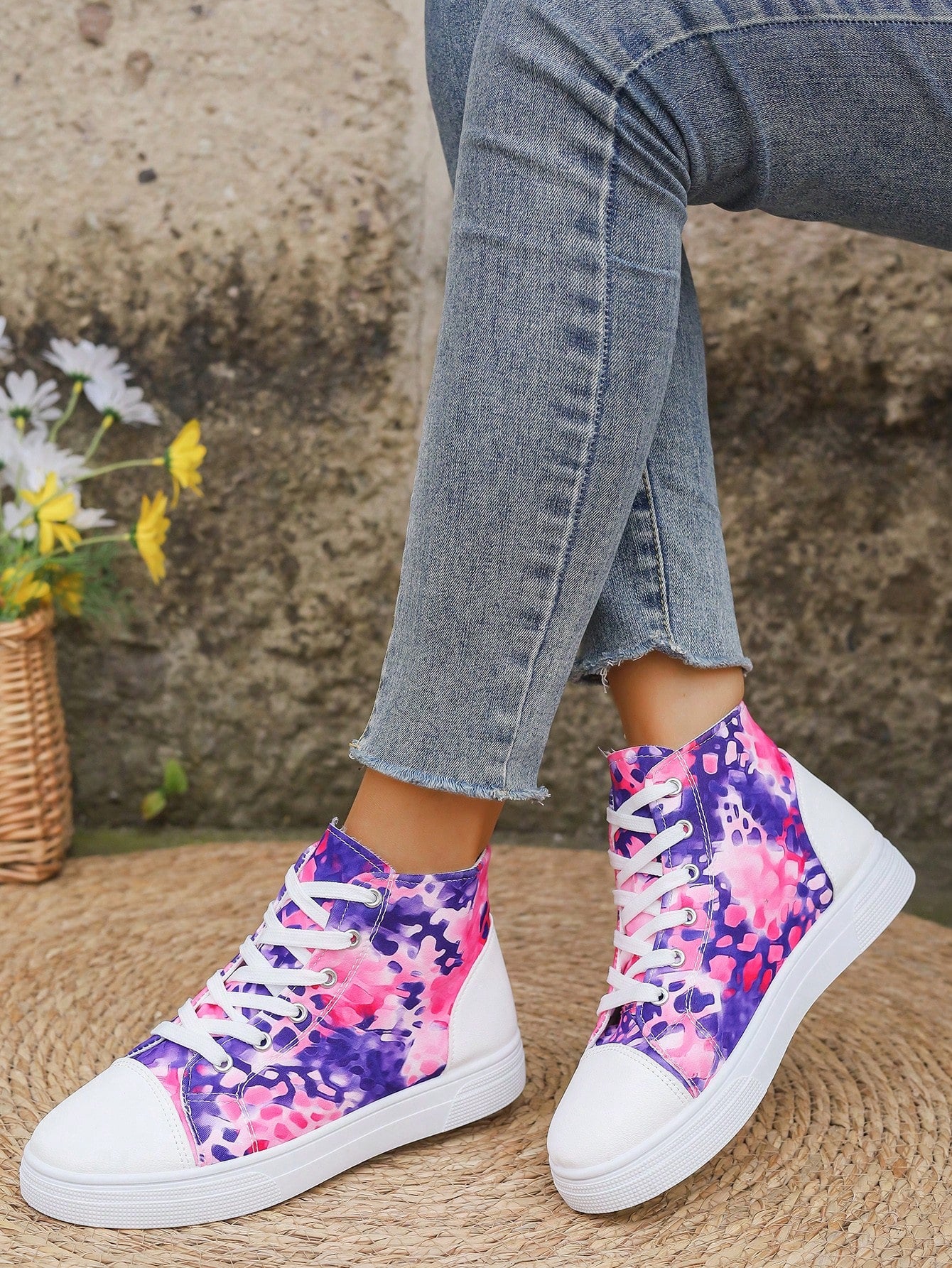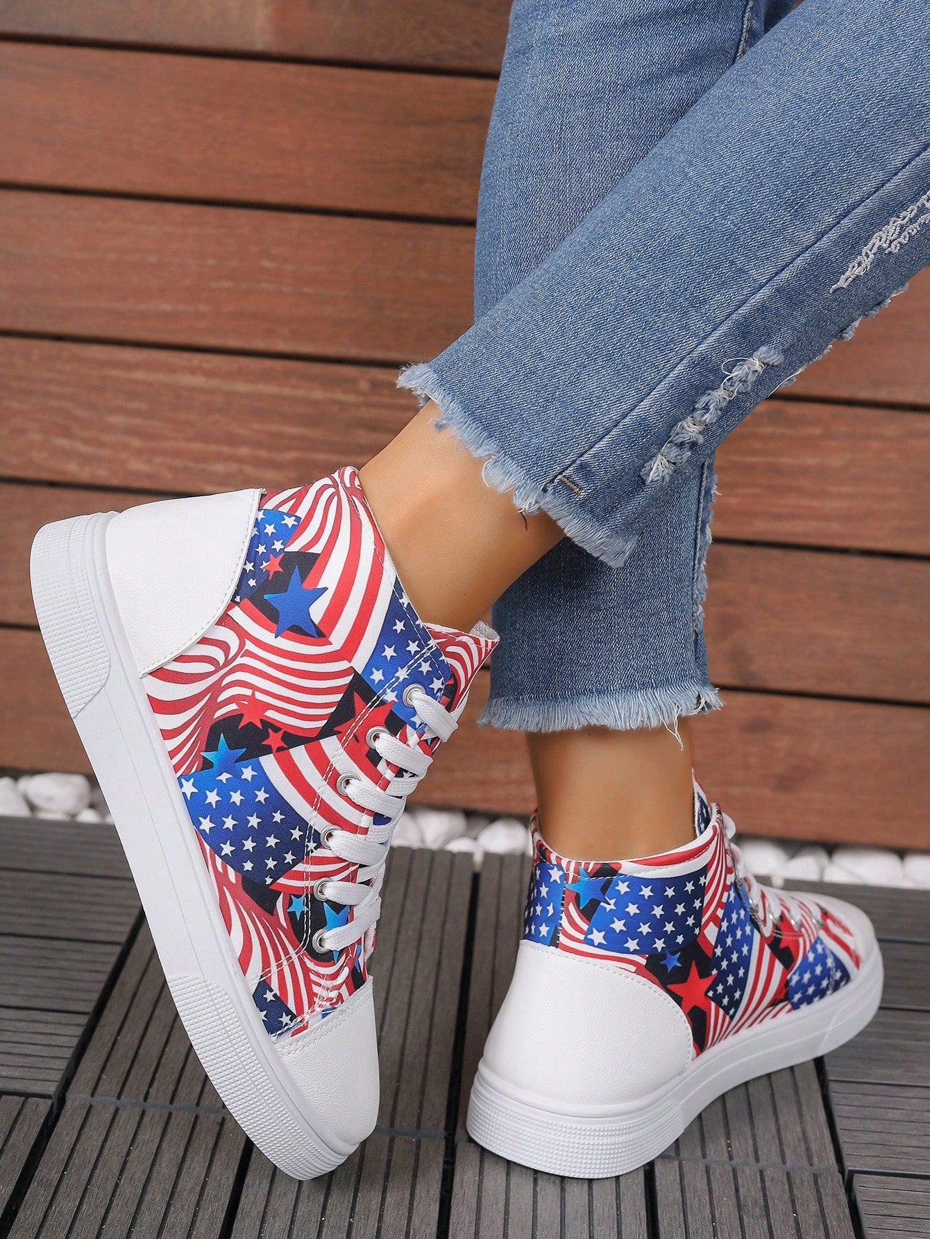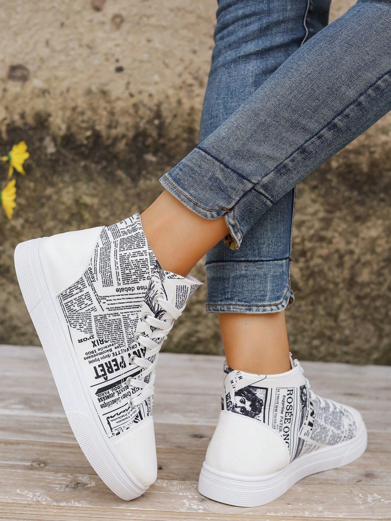 These European Style Plus Size 3D Printed High Top Sneakers are designed to provide both comfort and style. The printed design adds a unique touch to the classic white color, making them a versatile addition to your wardrobe. With a high top design, these sneakers offer extra support for your feet, perfect for all-day wear.