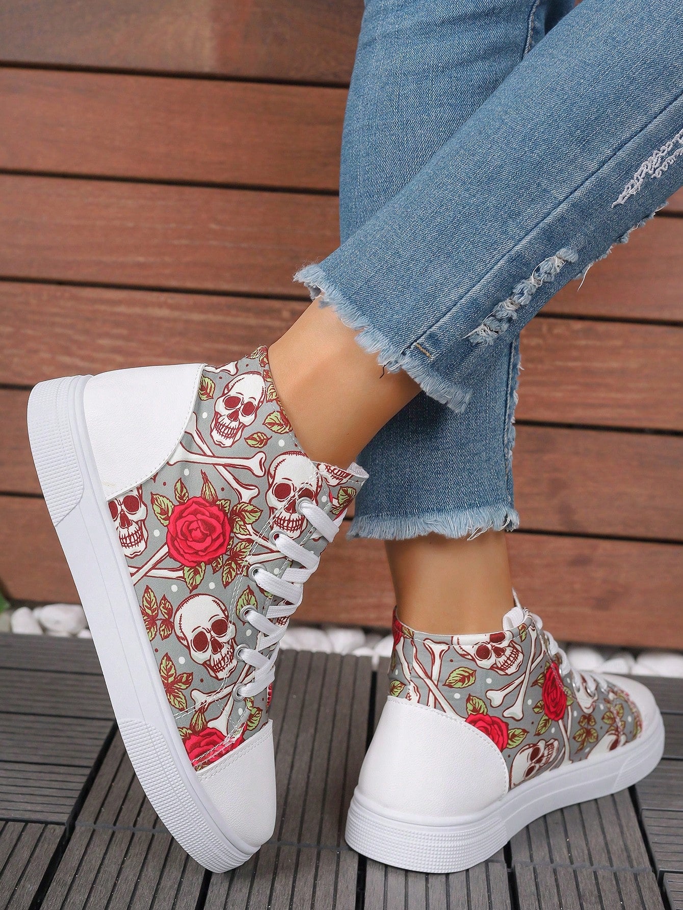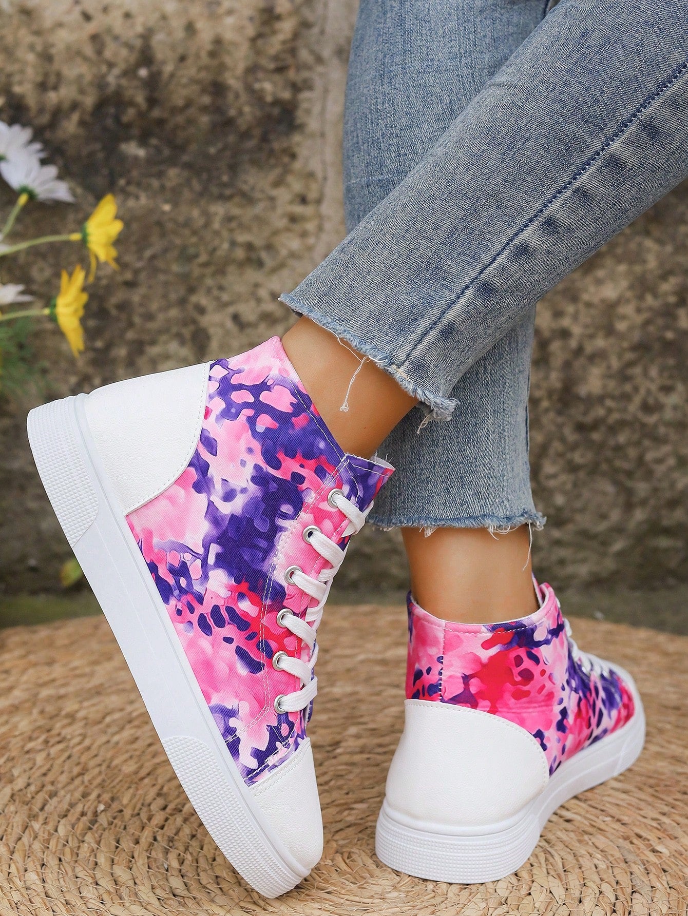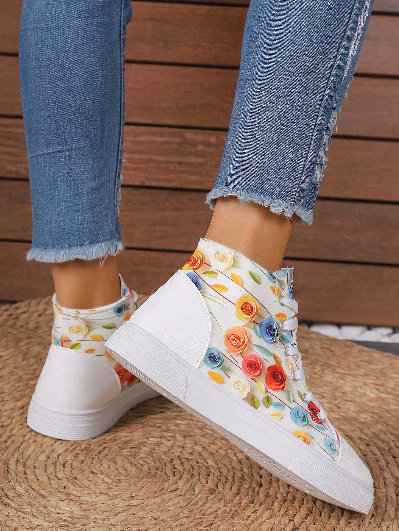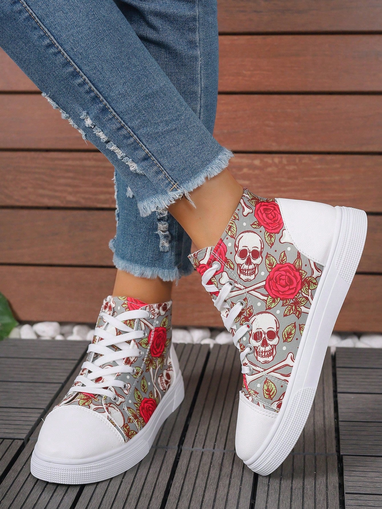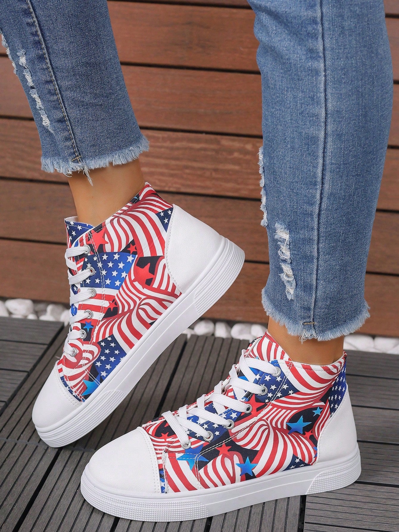 These European Style Plus Size 3D Printed High Top Sneakers are designed to provide both comfort and style. The printed design adds a unique touch to the classic white color, making them a versatile addition to your wardrobe. With a high top design, these sneakers offer extra support for your feet, perfect for all-day wear.