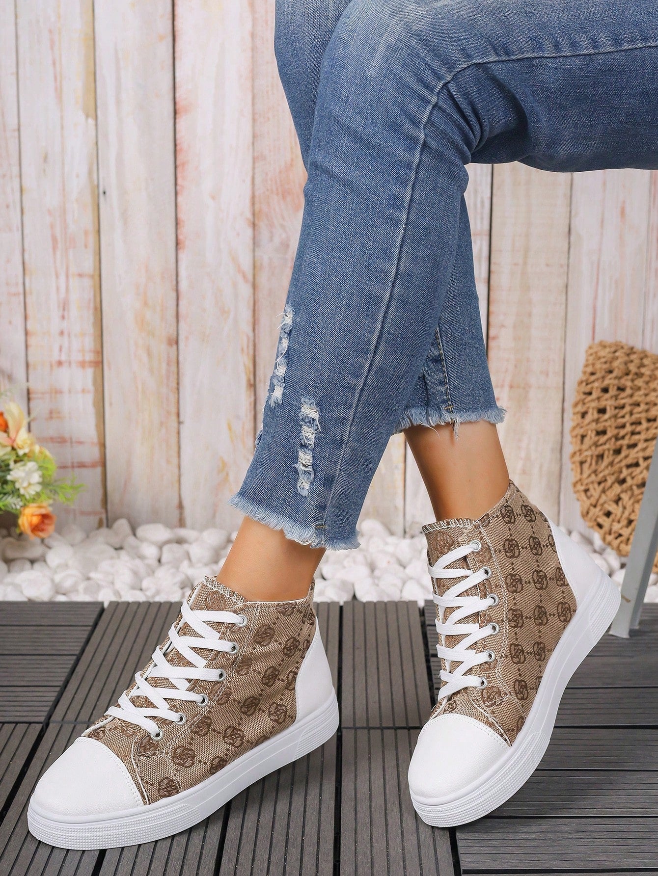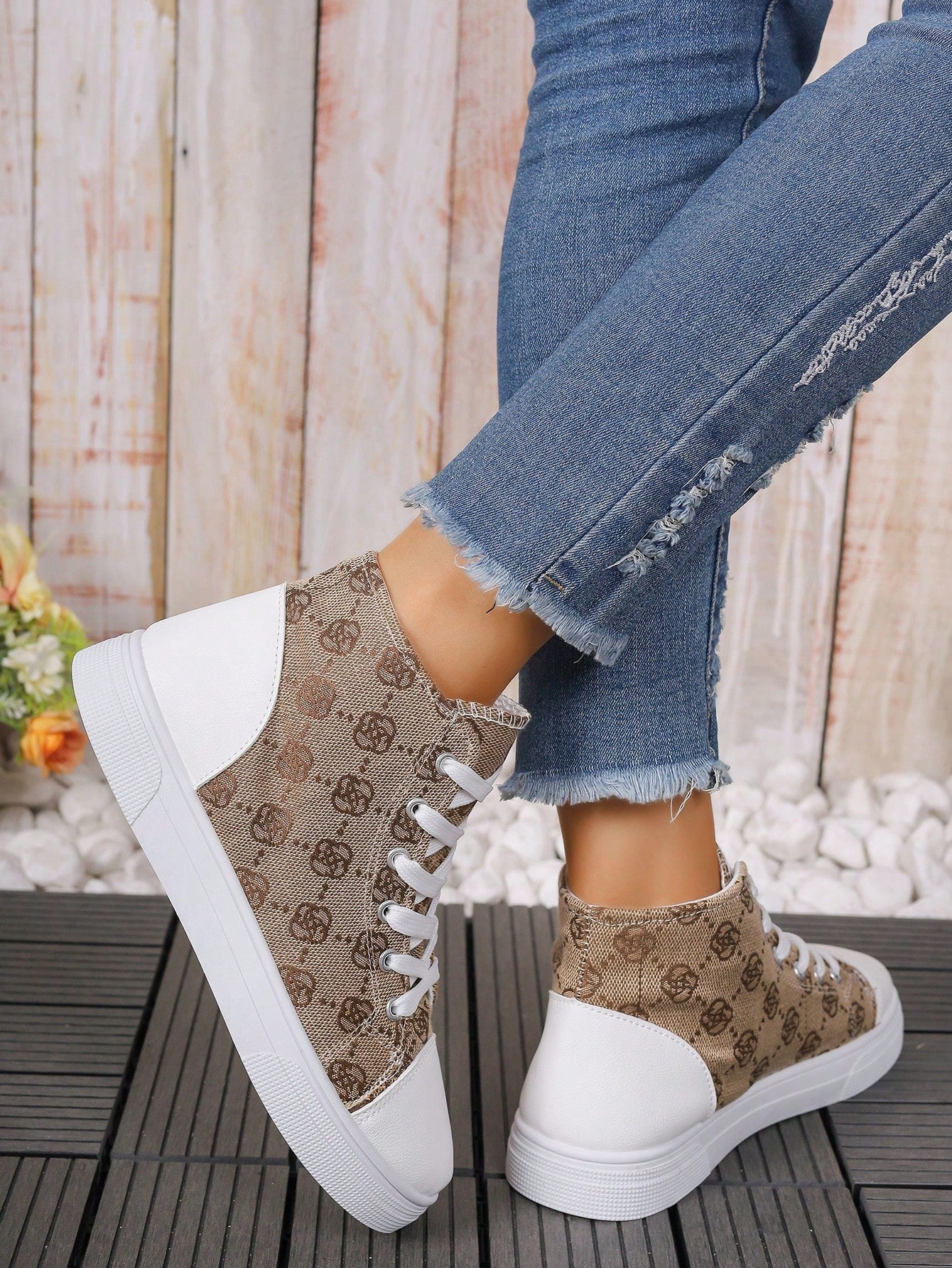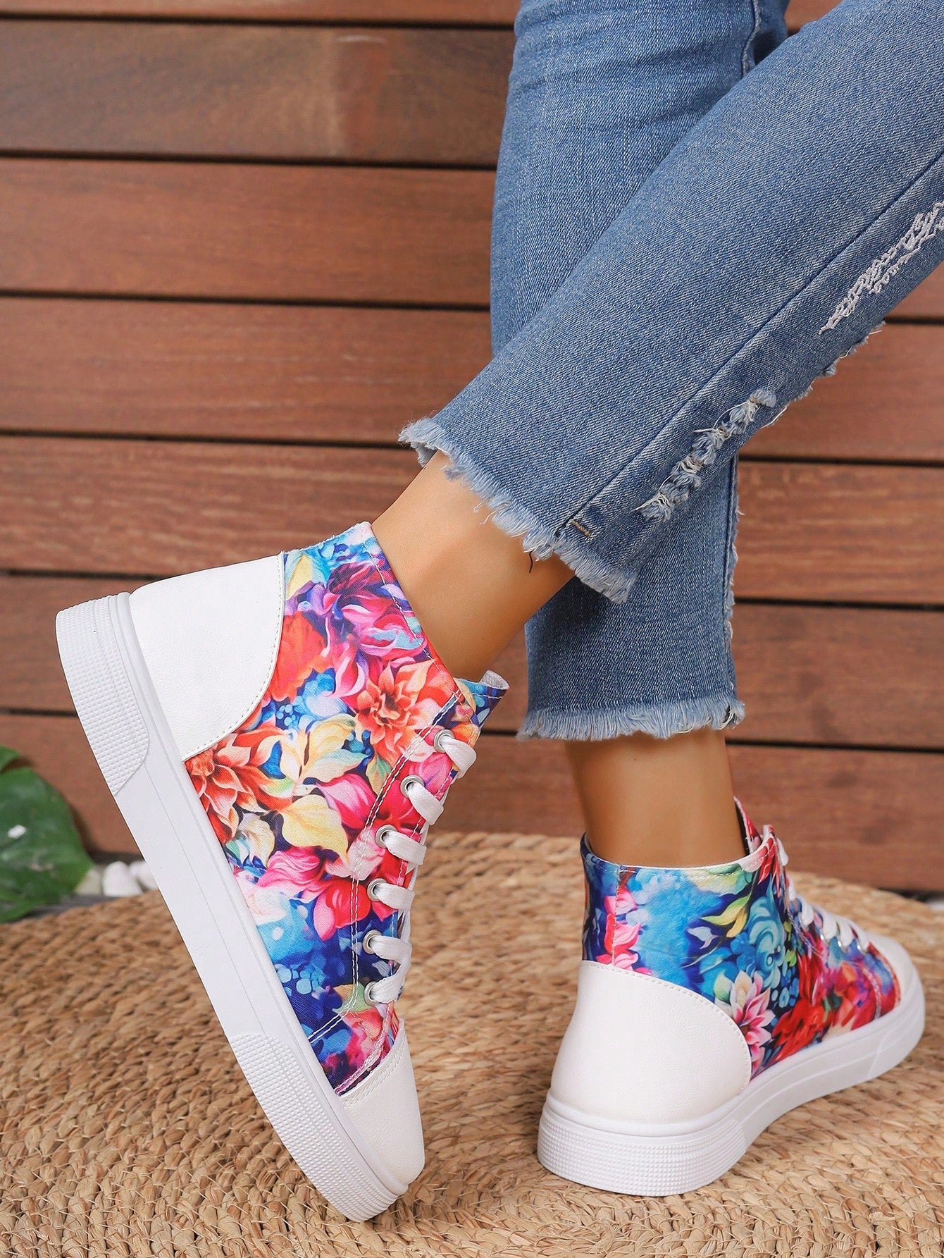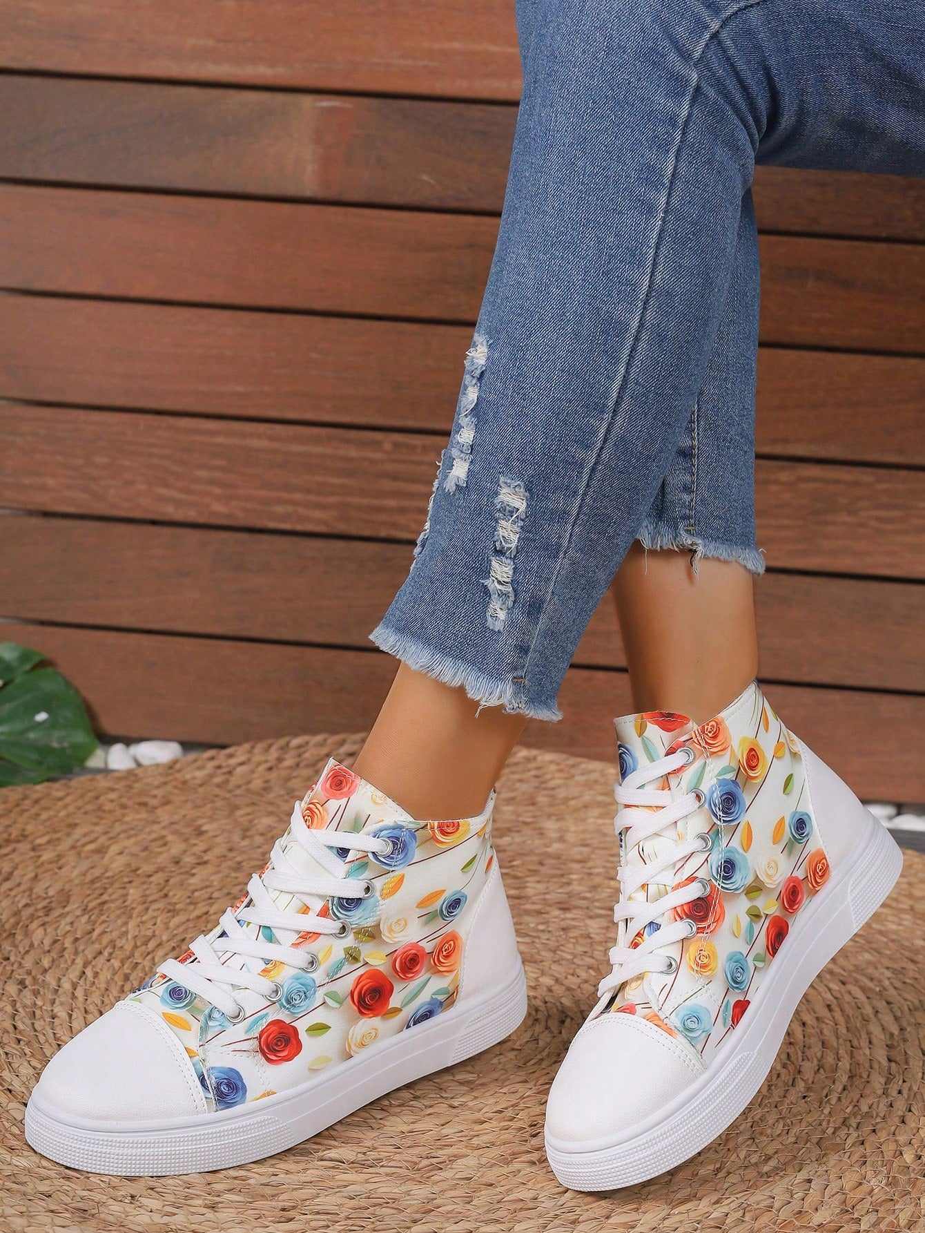 These European Style Plus Size 3D Printed High Top Sneakers are designed to provide both comfort and style. The printed design adds a unique touch to the classic white color, making them a versatile addition to your wardrobe. With a high top design, these sneakers offer extra support for your feet, perfect for all-day wear.