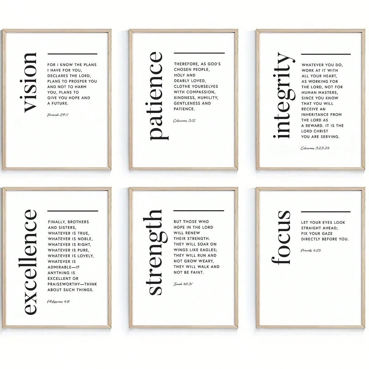 Faithful Inspirations: 6-Piece Bible Verse Wall Art Set - Ideal Gift for Home and Office Decor