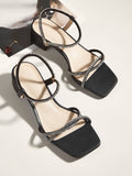 Fashionable Rhinestone Square Toe Mule Sandals for Daily Work and Party
