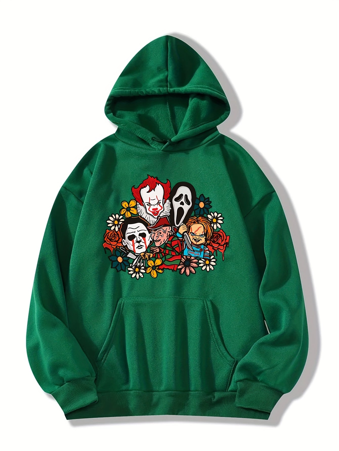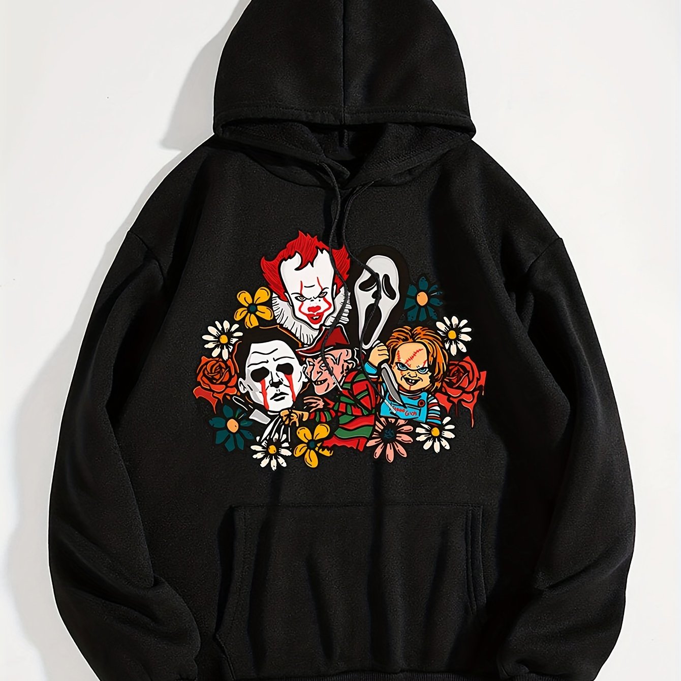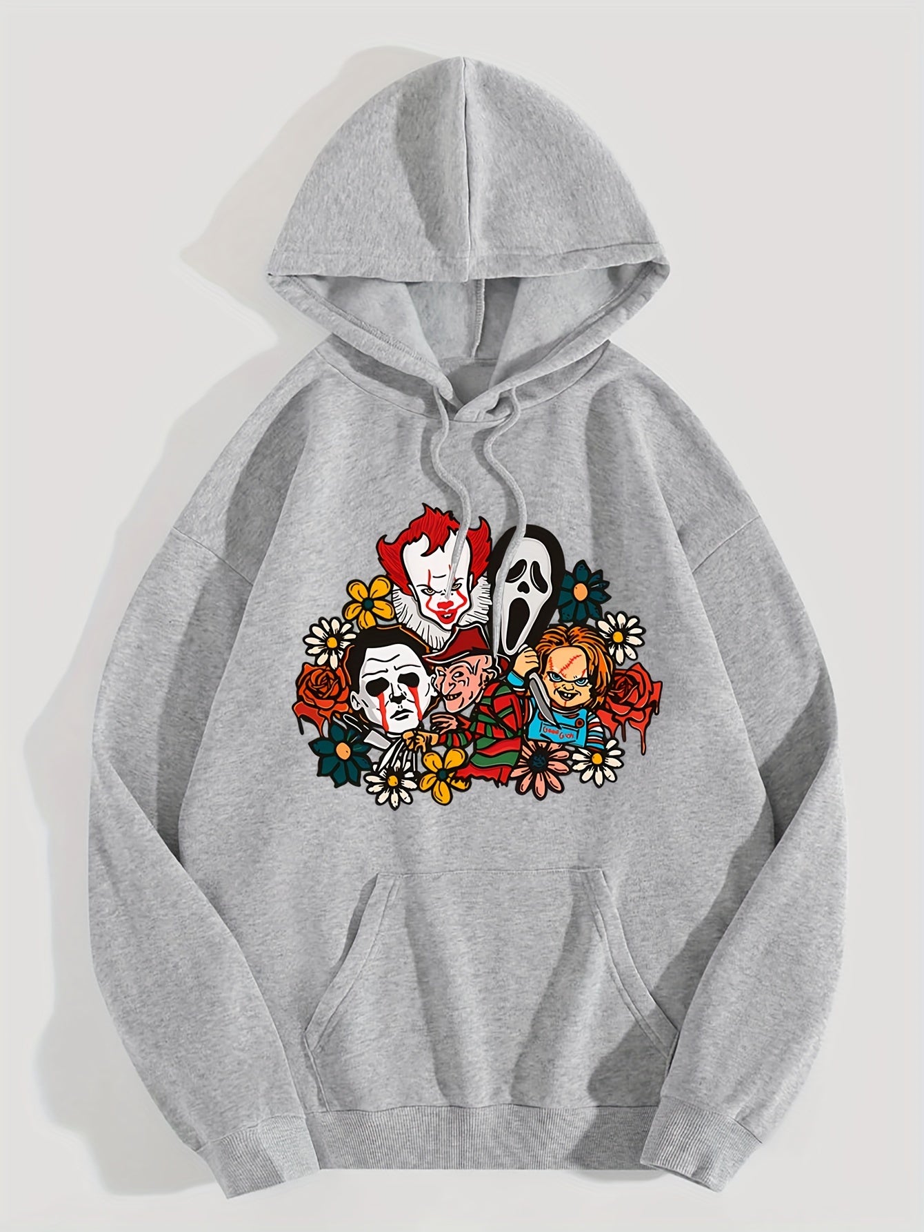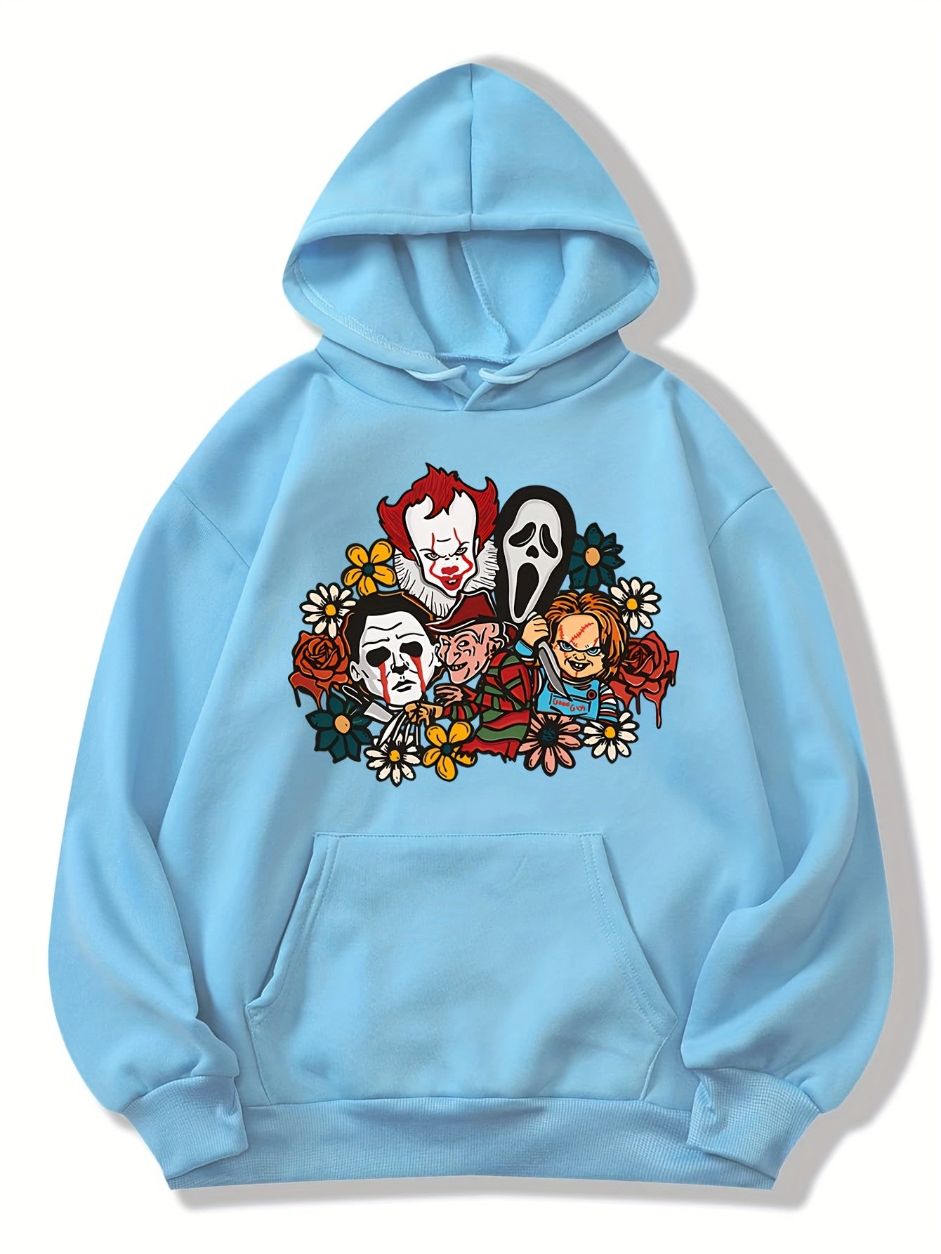 Fear-infused Style: Women's Horror Movie Print Hoodie - Embrace the Chills This Winter-Fall Season!