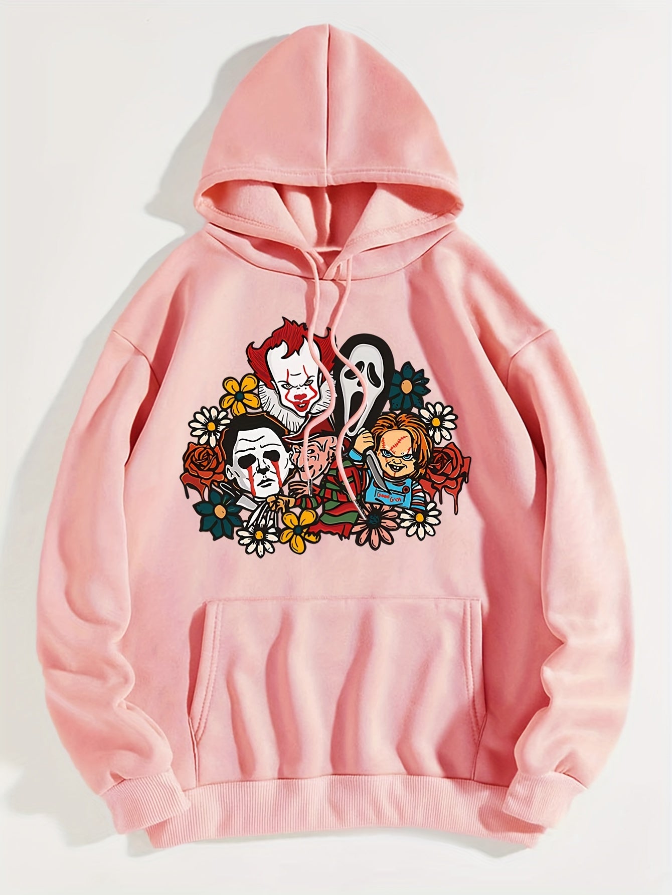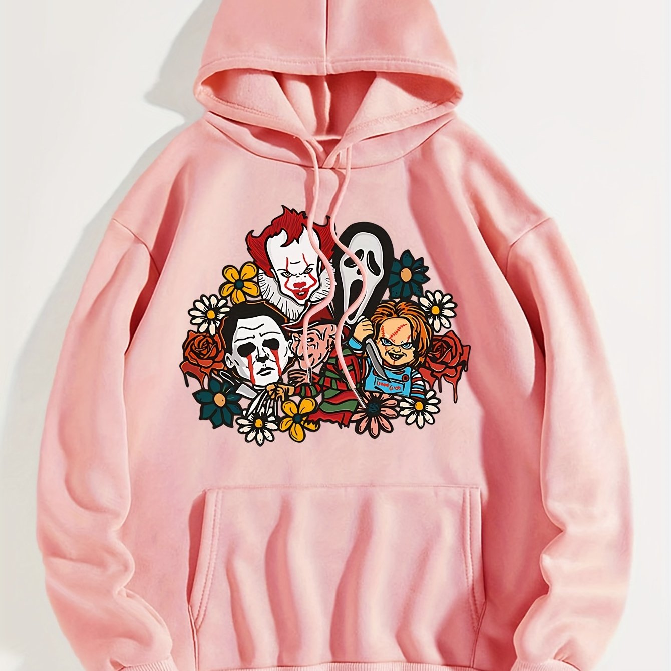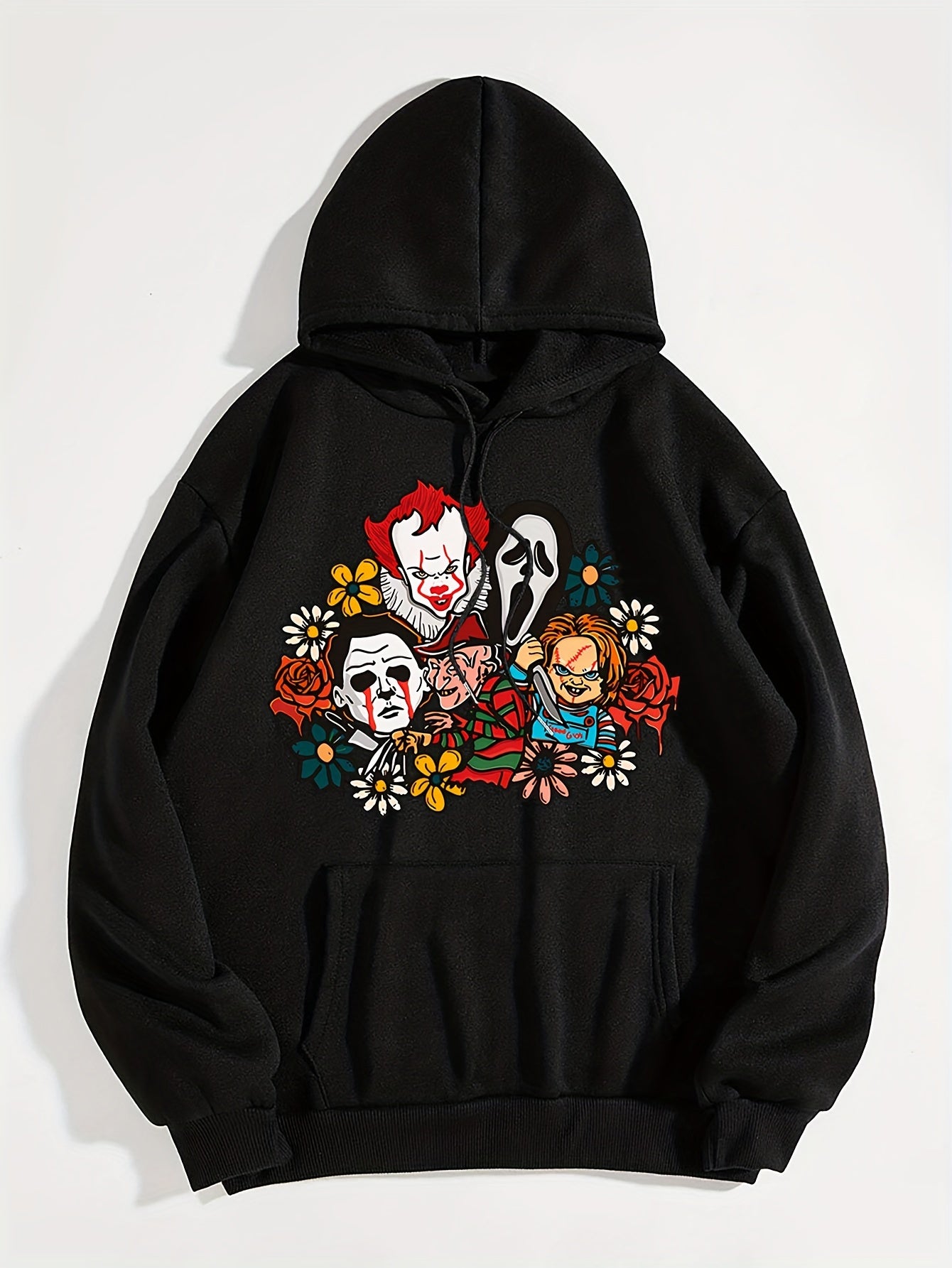 Fear-infused Style: Women's Horror Movie Print Hoodie - Embrace the Chills This Winter-Fall Season!