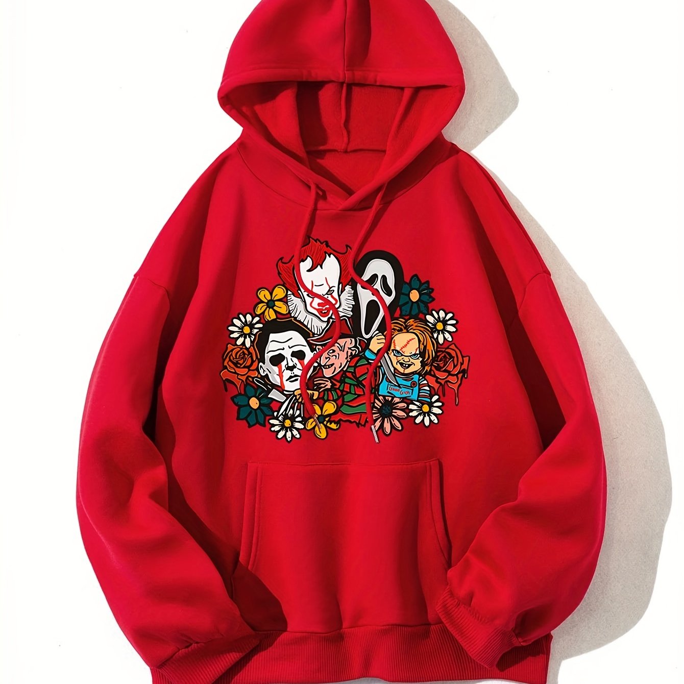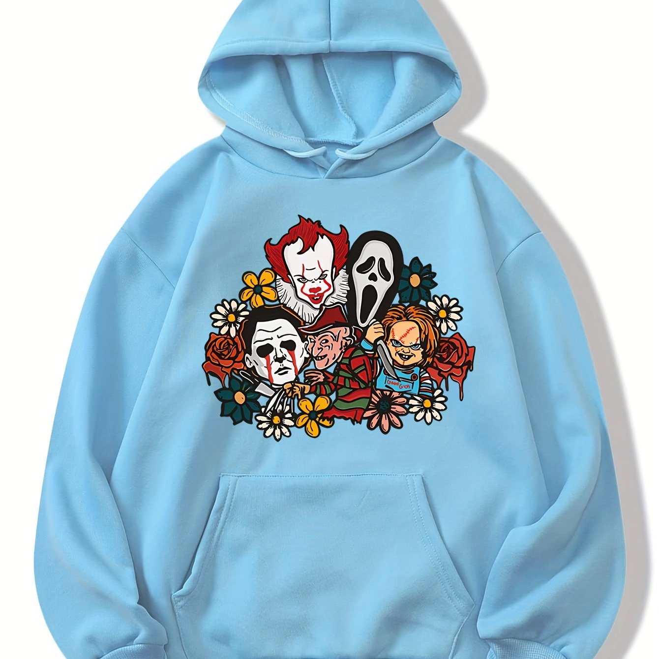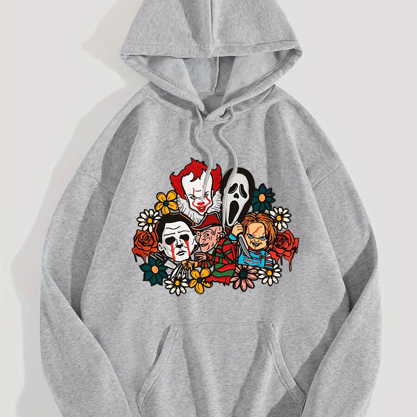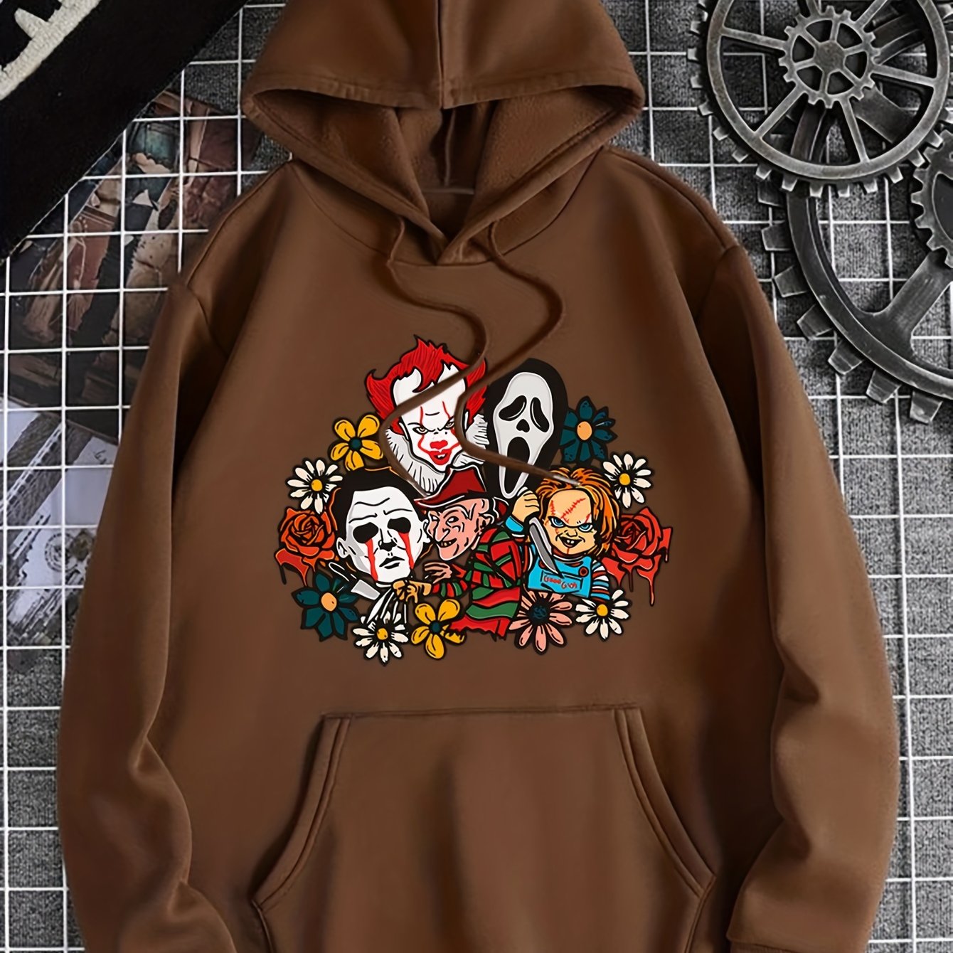 Fear-infused Style: Women's Horror Movie Print Hoodie - Embrace the Chills This Winter-Fall Season!