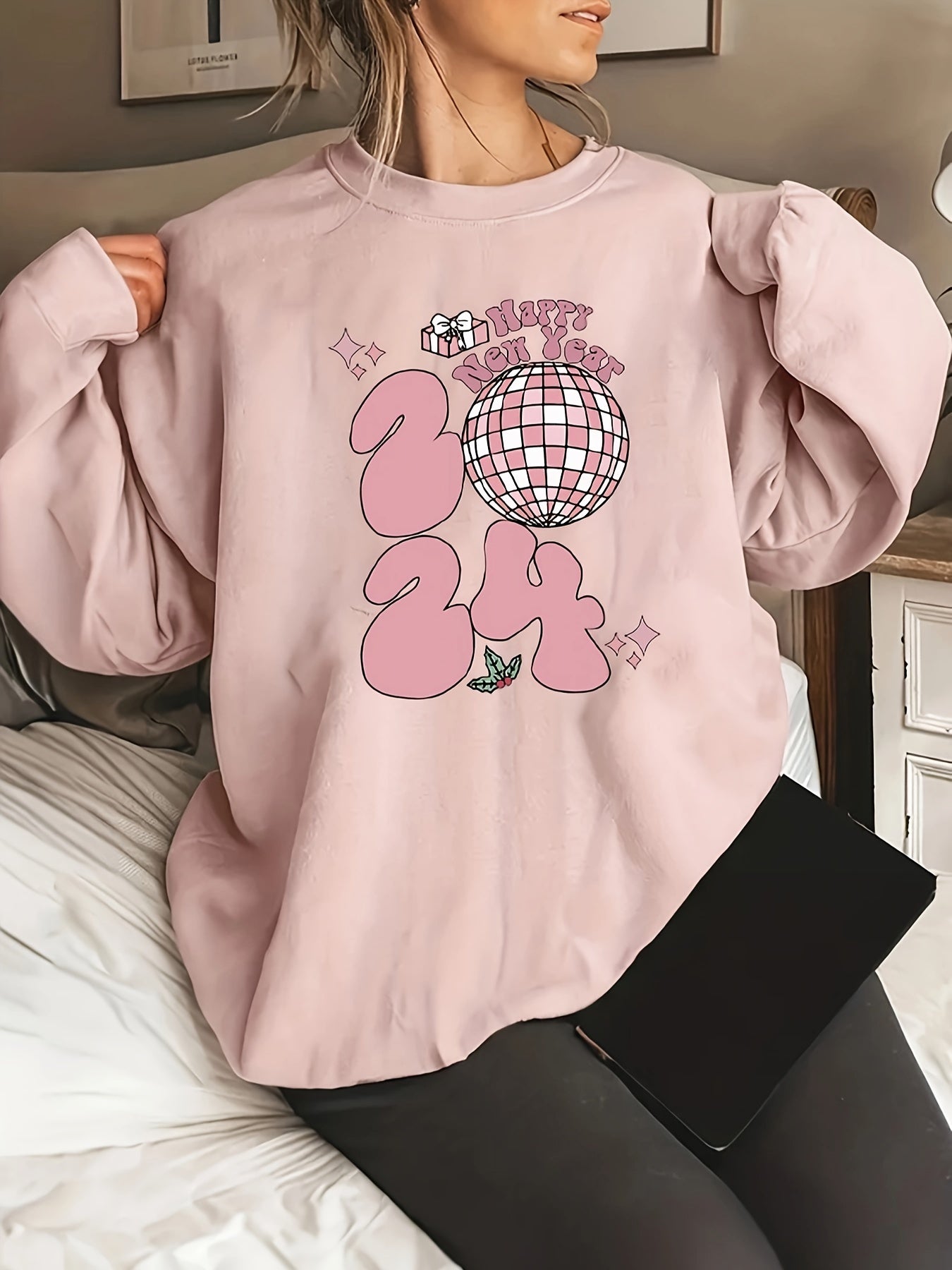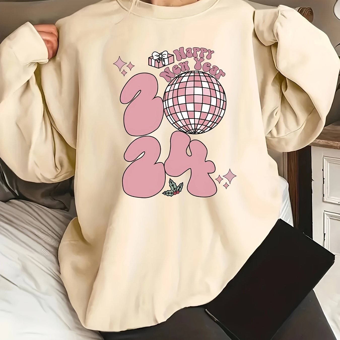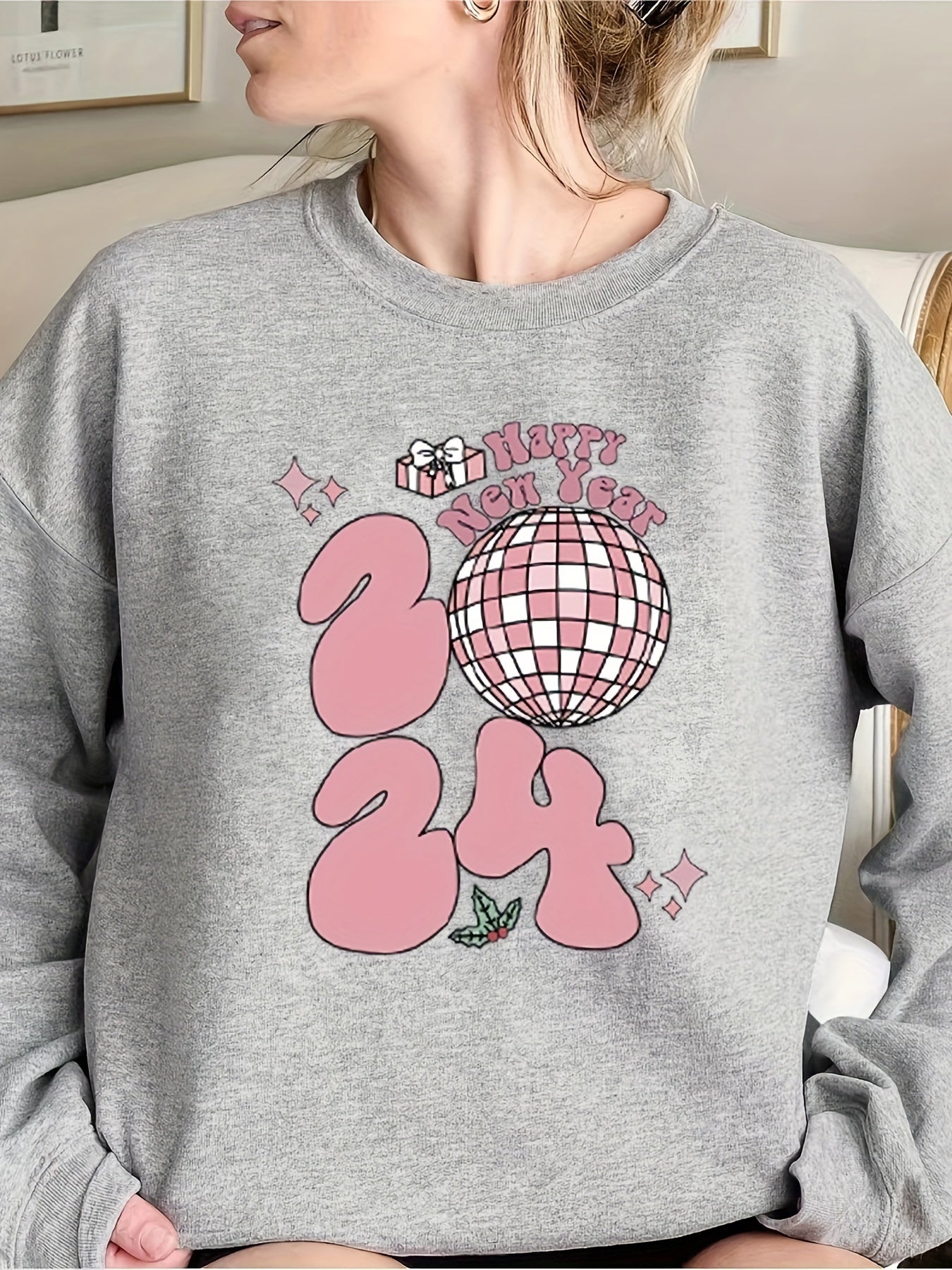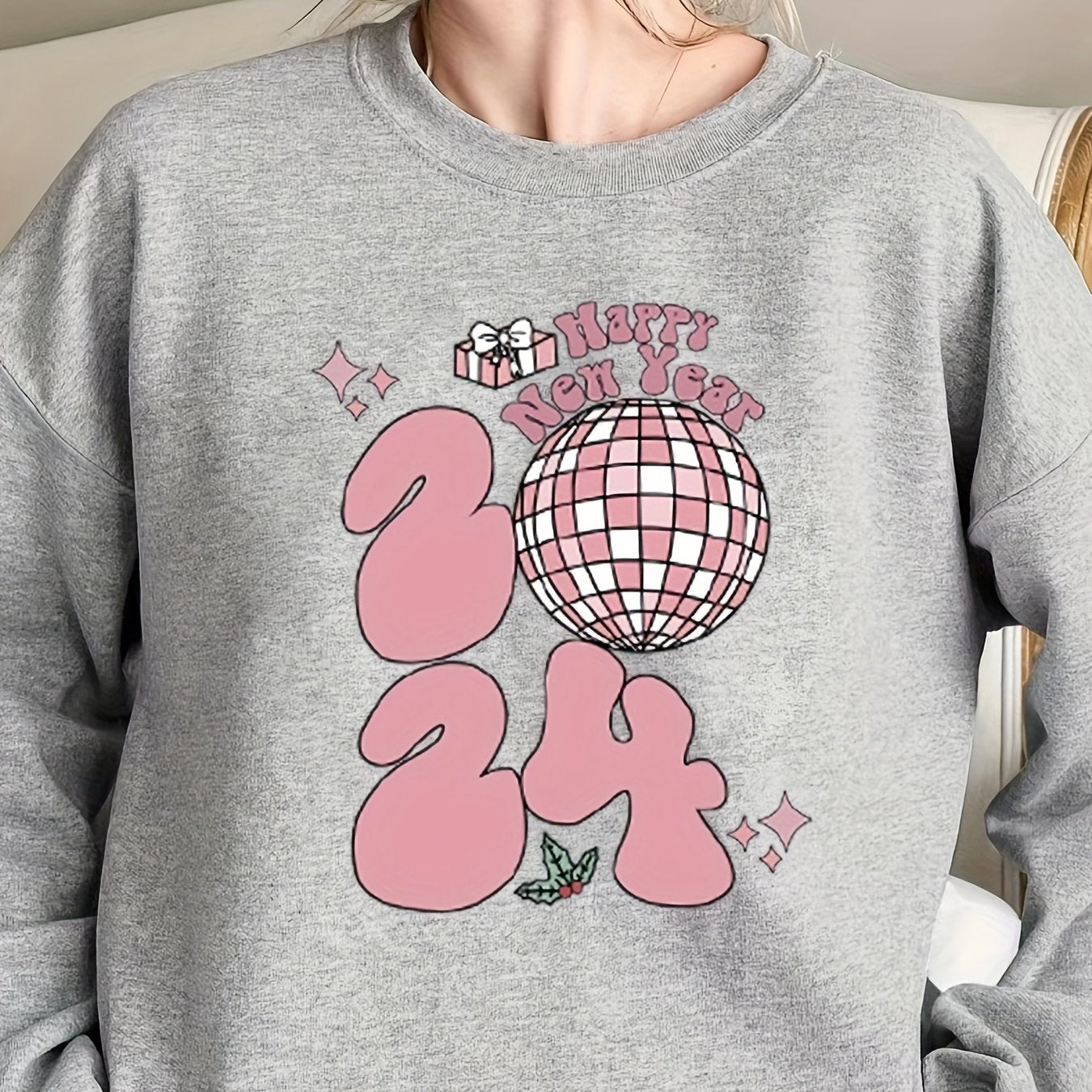 Festive and Fashionable: Happy New Year Print Sweatshirt - Women's Casual Long Sleeve Crew Neck Sweatshirt