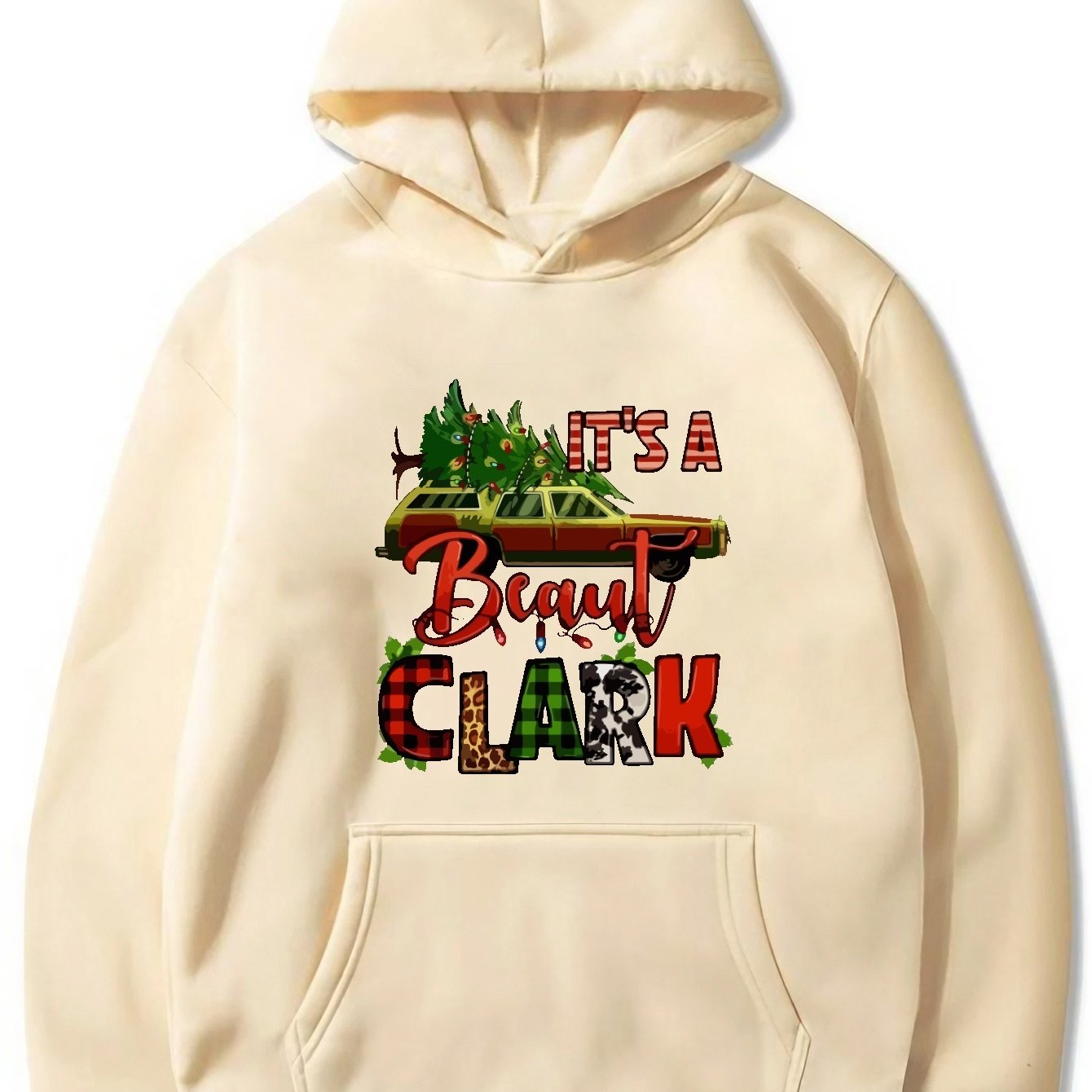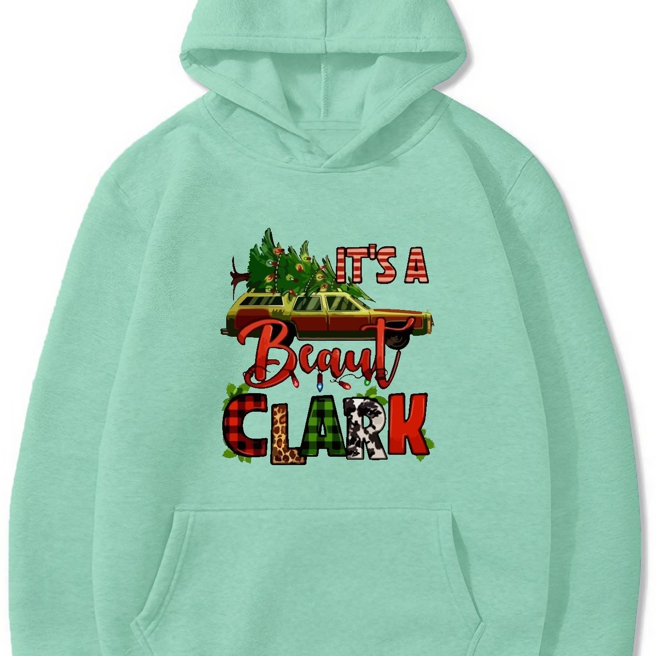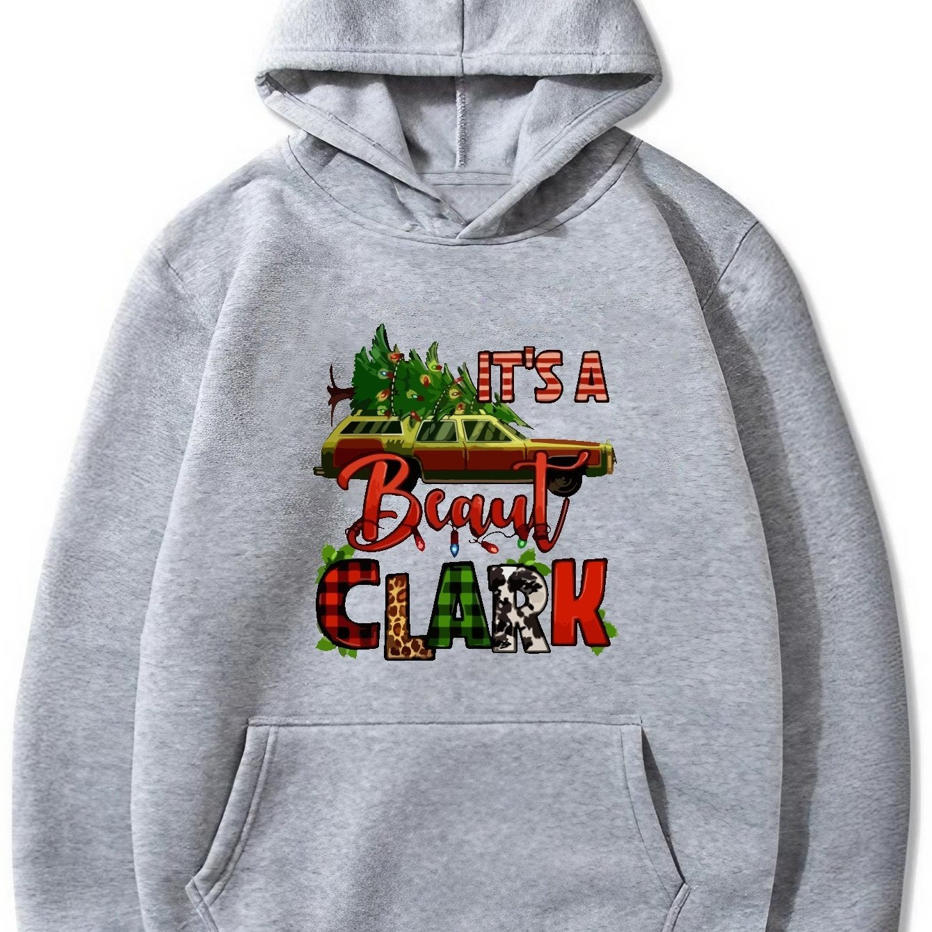Festive Men's Christmas Graphic Print Hoodie: Stay Cozy with Kangaroo Pocket and Casual Pullover Design