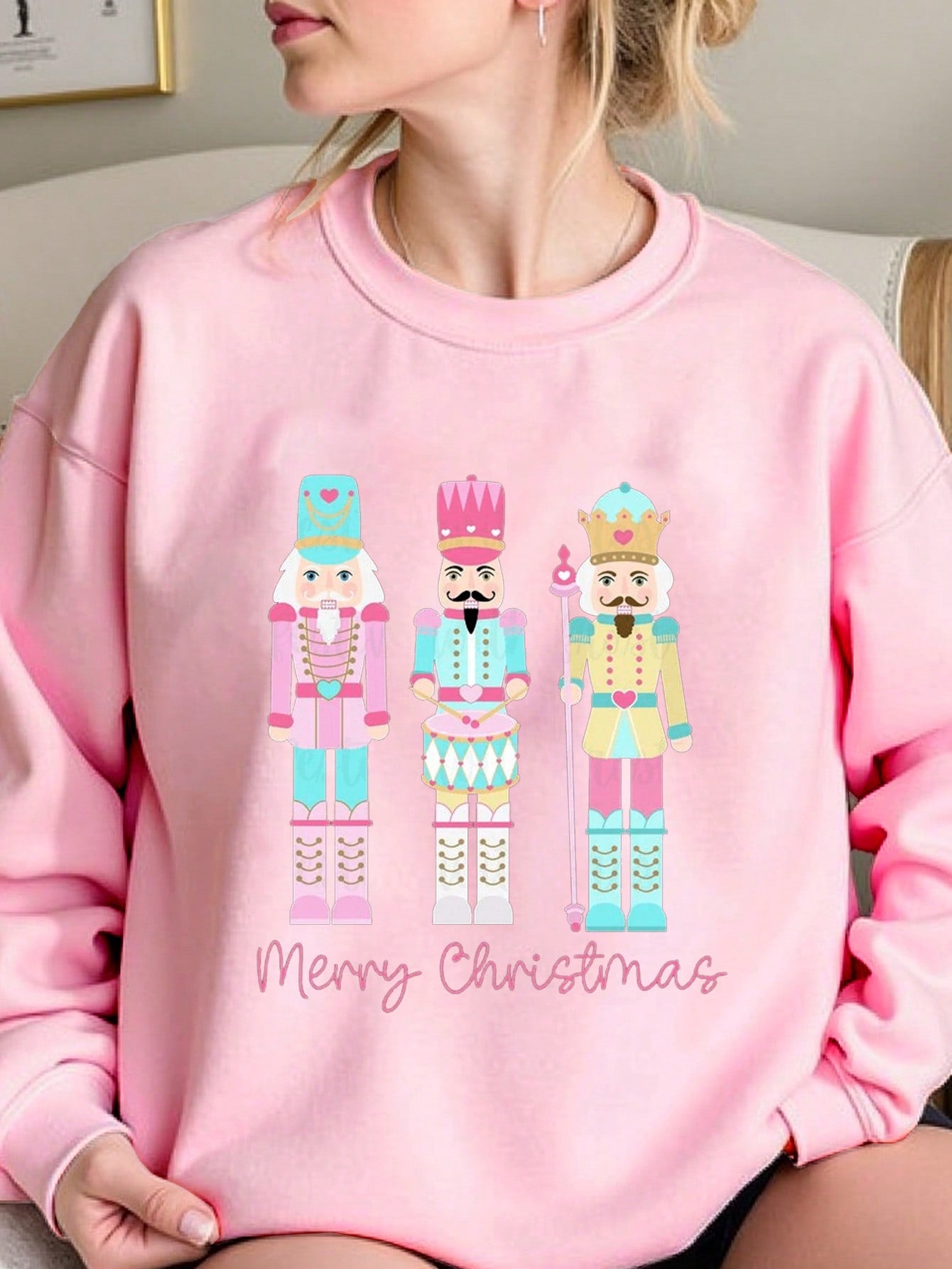 Festive Nutcracker Sweatshirt: Cozy Round Neck Christmas Apparel for Women