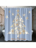 Festive Ocean-themed Christmas Shower Curtain – Waterproof Holiday Decor with Starfish Shells and Christmas Tree Design