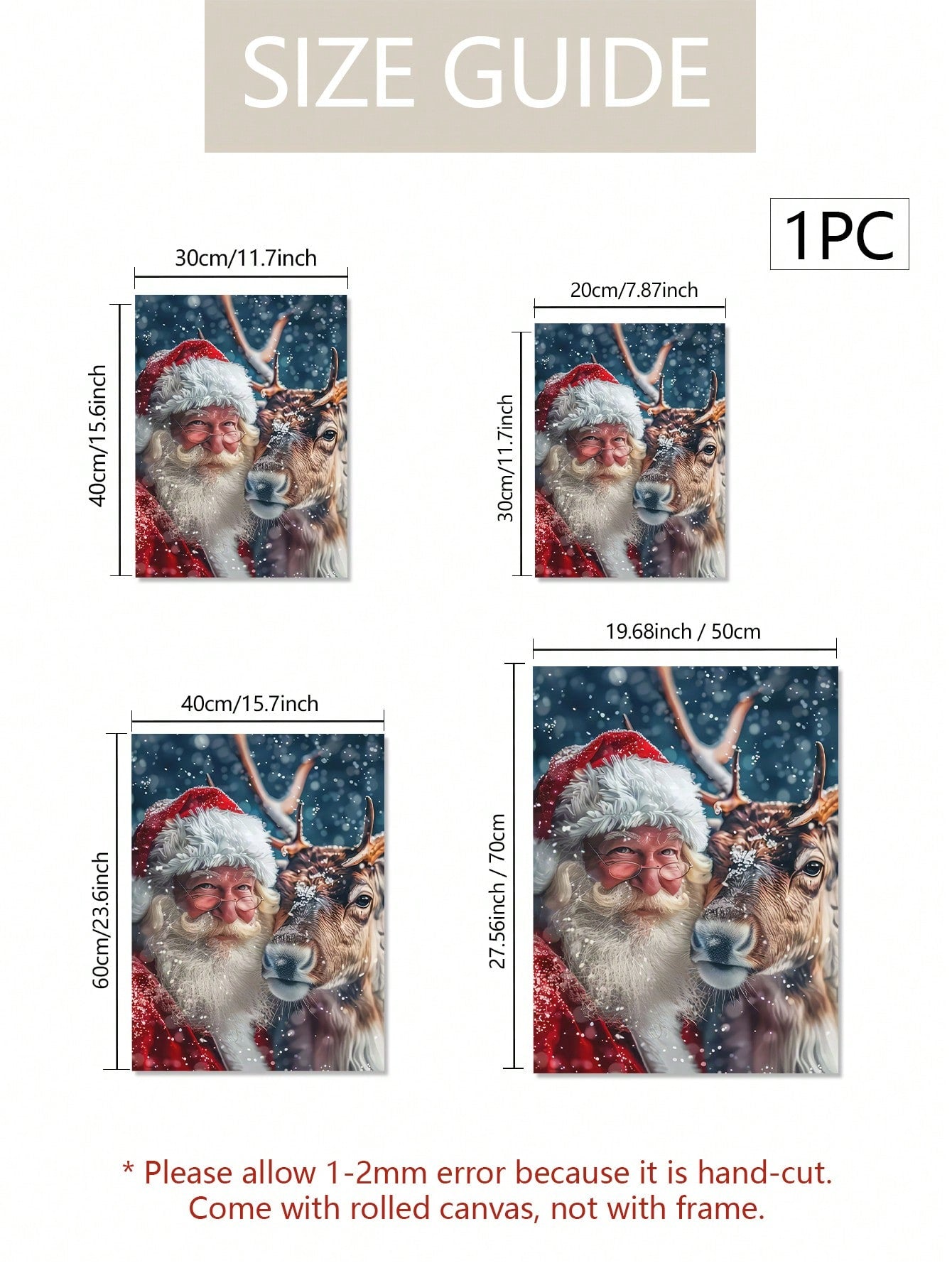 Festive Reindeer & Santa Claus Canvas Poster - Holiday Wall Art for Cozy Living Spaces