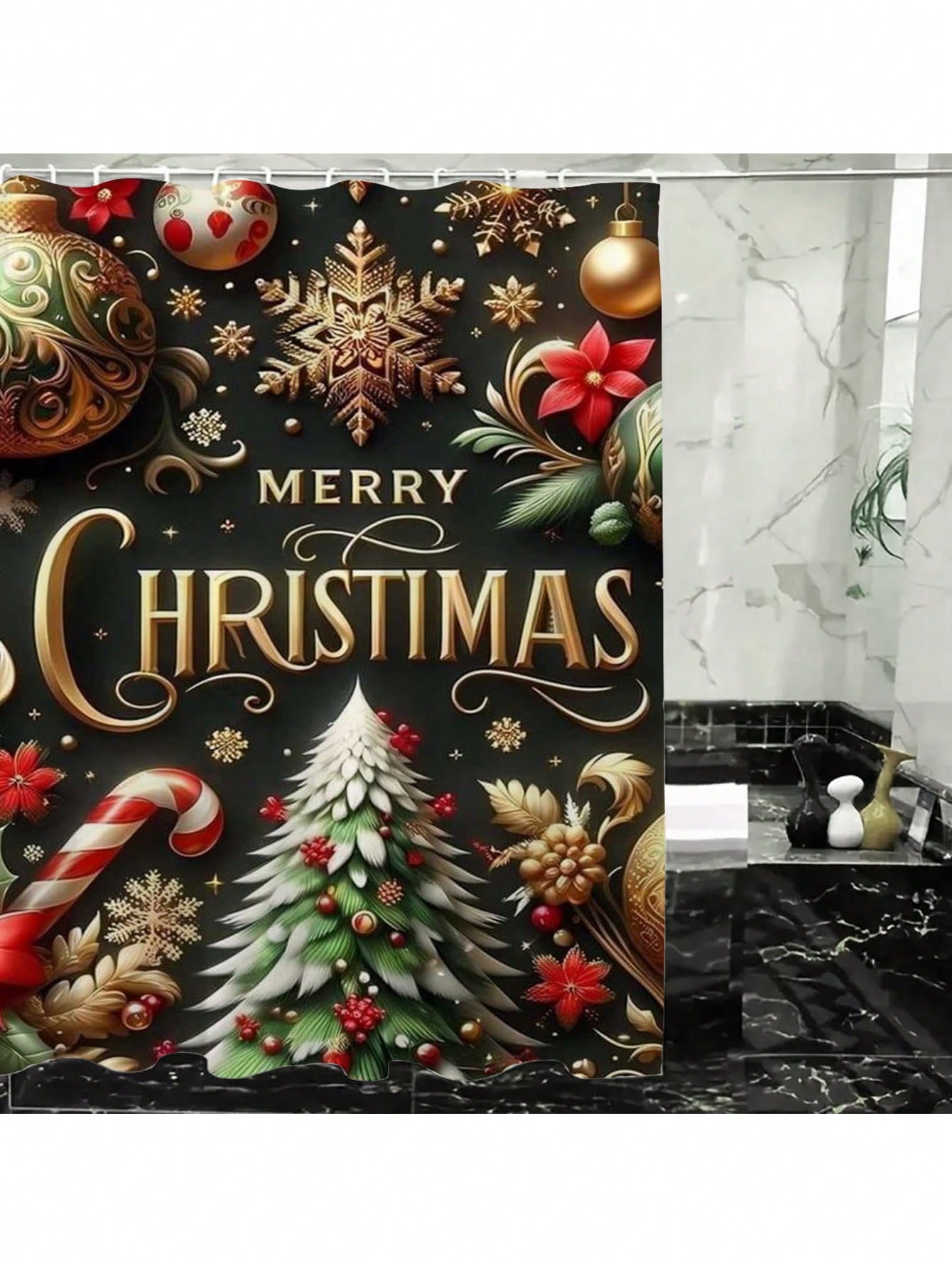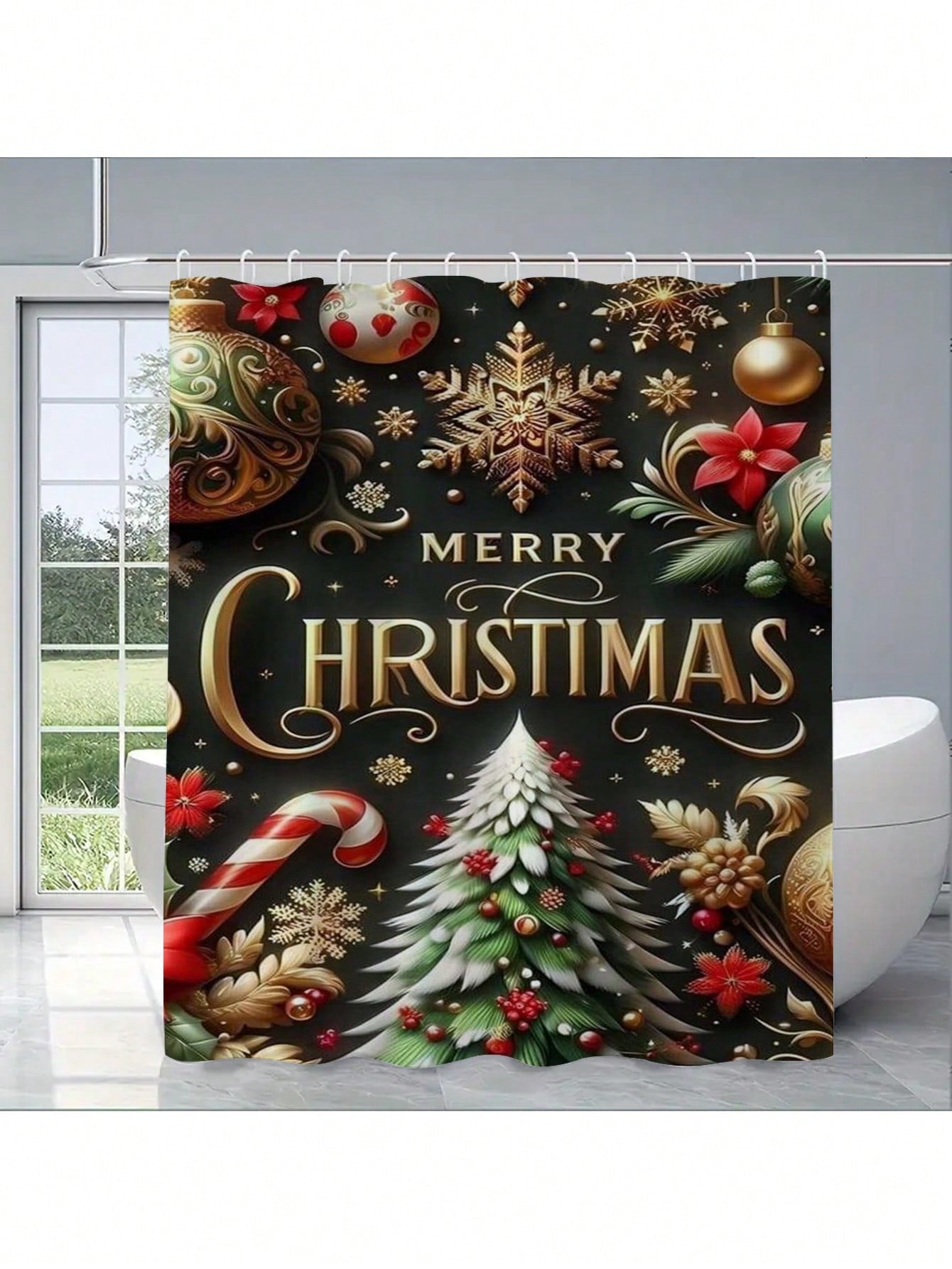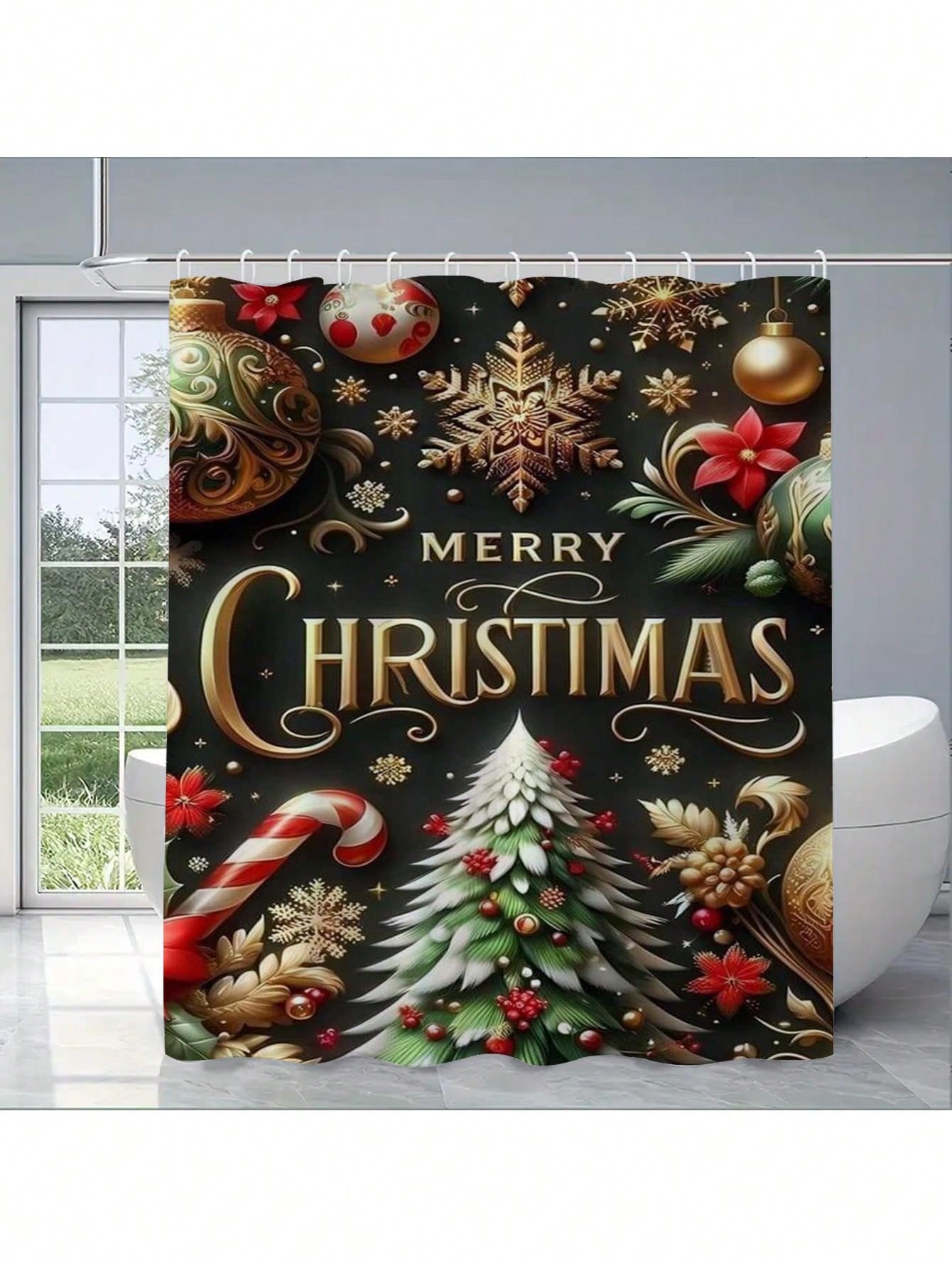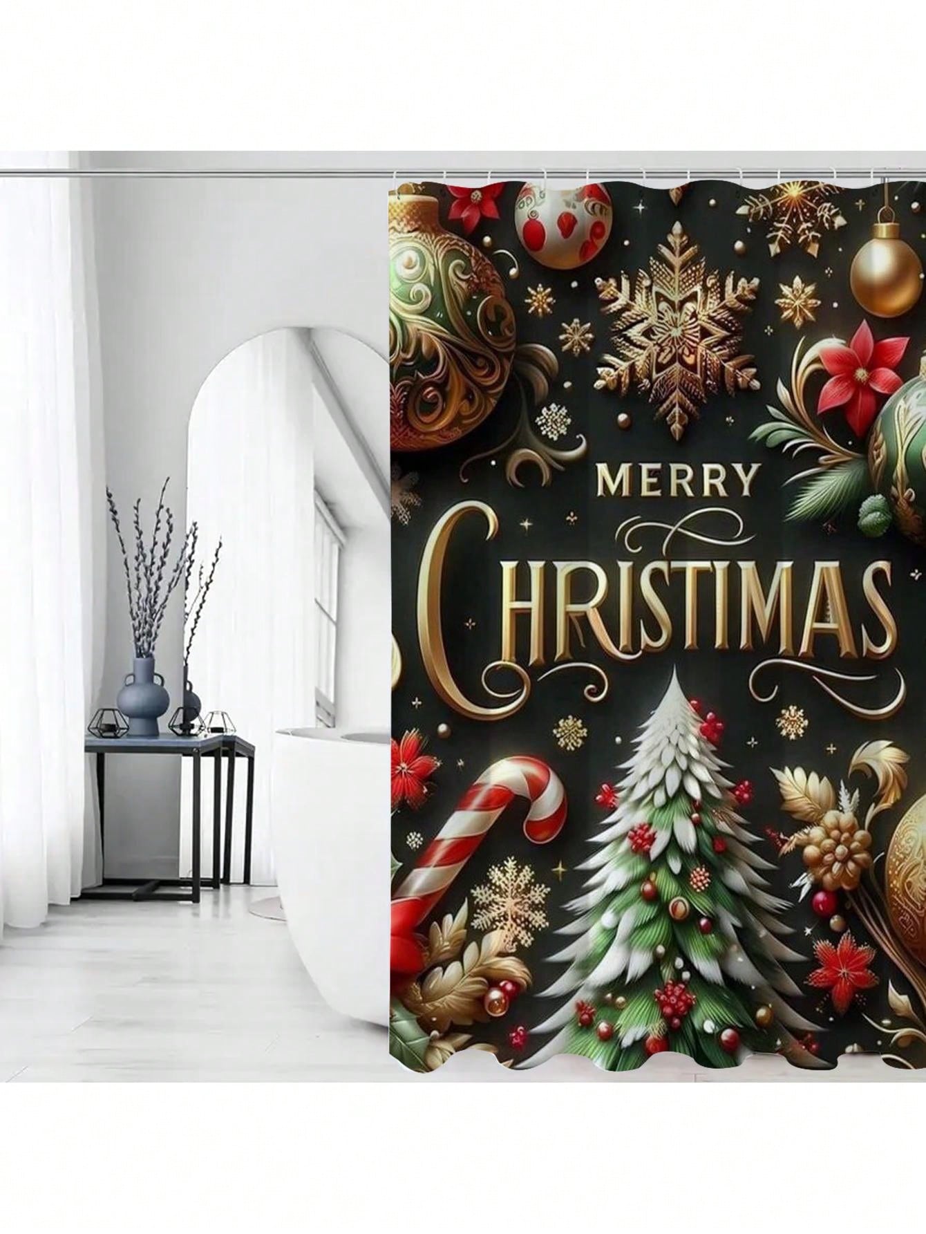 Festive Satin Christmas Shower Curtain - Waterproof & Washable Bathroom Decor