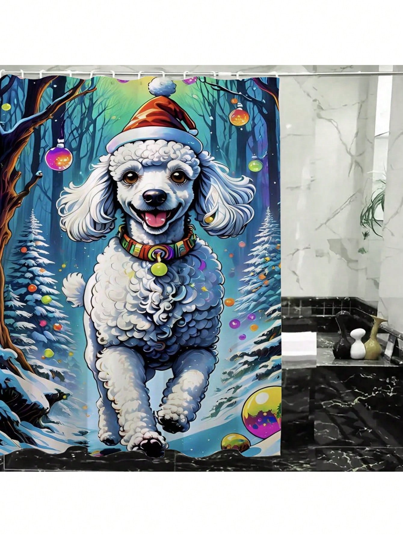 Make a splash with our Festive Sheep Shower Curtain! Made from satin-textured material, this waterproof curtain is a fun and functional addition to your bathroom. The playful sheep print adds a touch of whimsy, making it the perfect decor for any shower. (Ewe won't find a better curtain anywhere else!)
