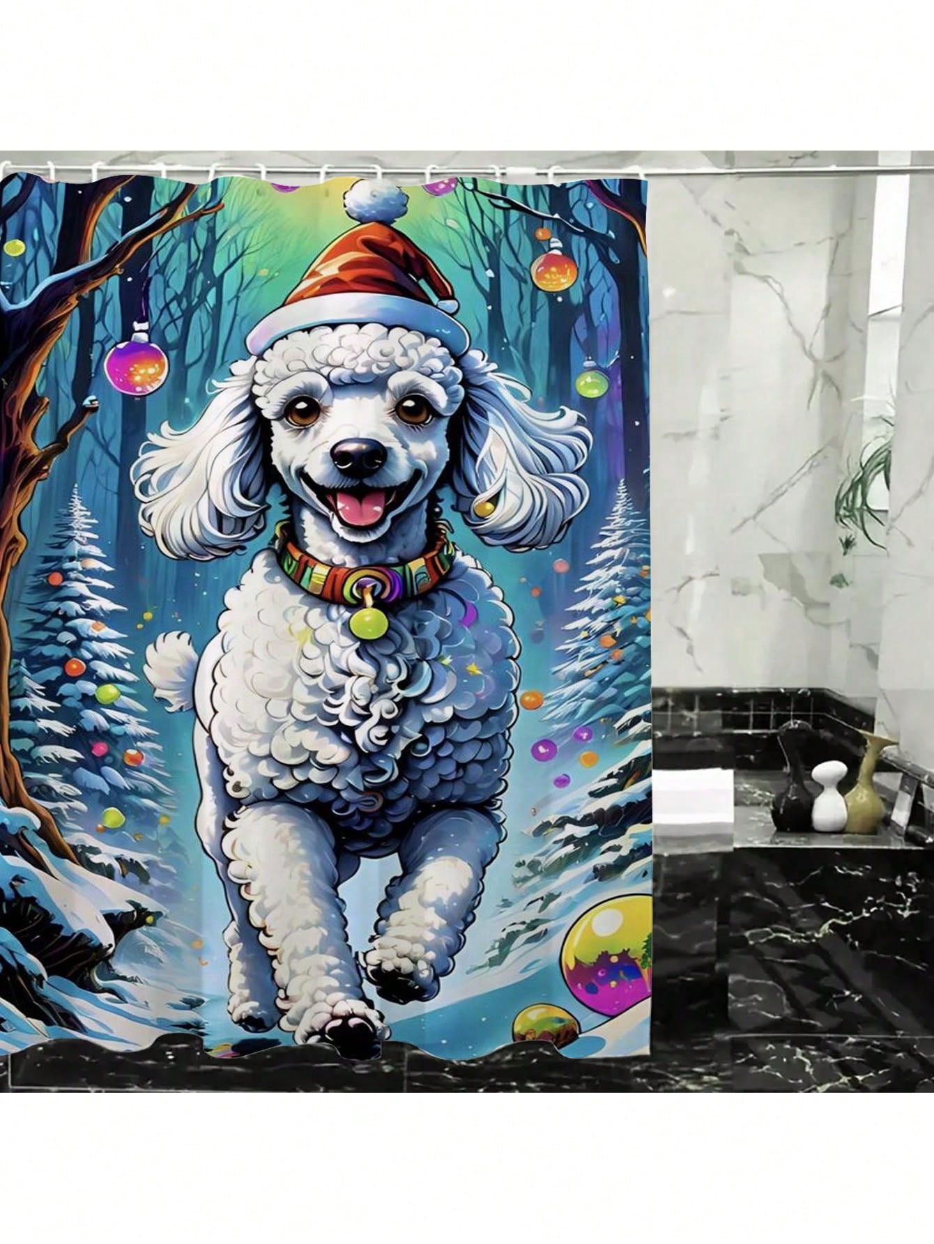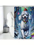 Festive Sheep Print Waterproof Shower Curtain – Satin Textured Bathroom Decor