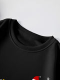 Festive Vibes: Christmas Skeleton Print Thermal-Lined Sweatshirt