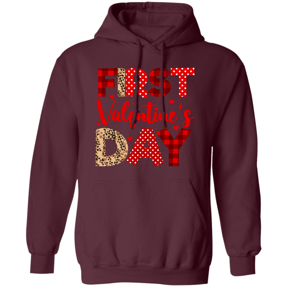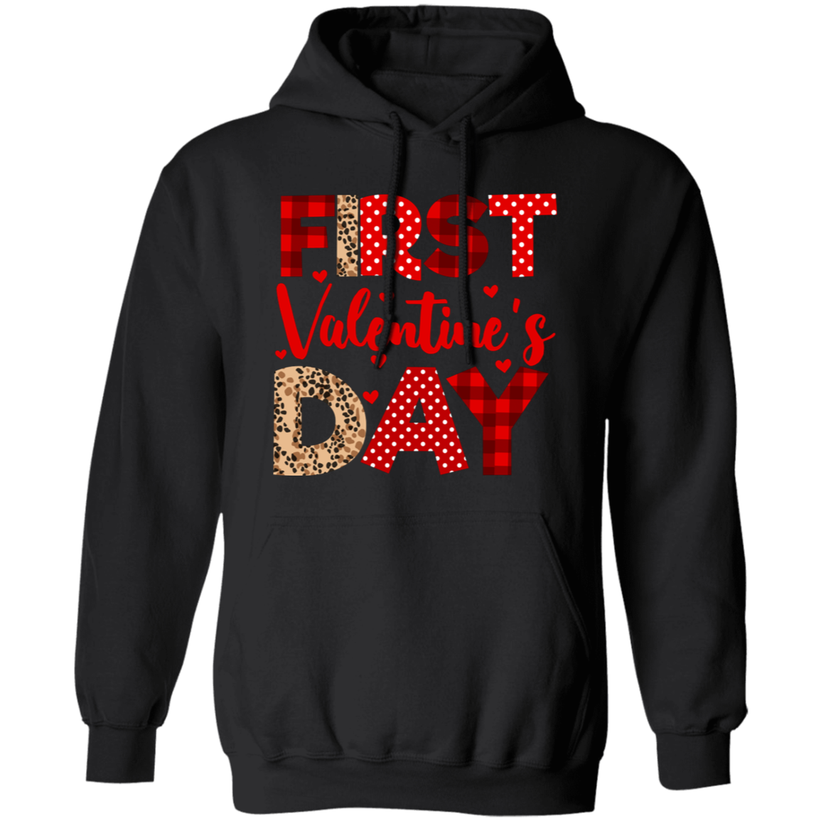 First Valentine's Day, Cute Valentine, Heart Pattern Pullover Hoodie