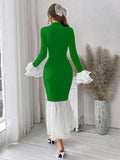 Fish Print Fantasy: Colorblocked Wedding Guest Dress with Ruffle Detail
