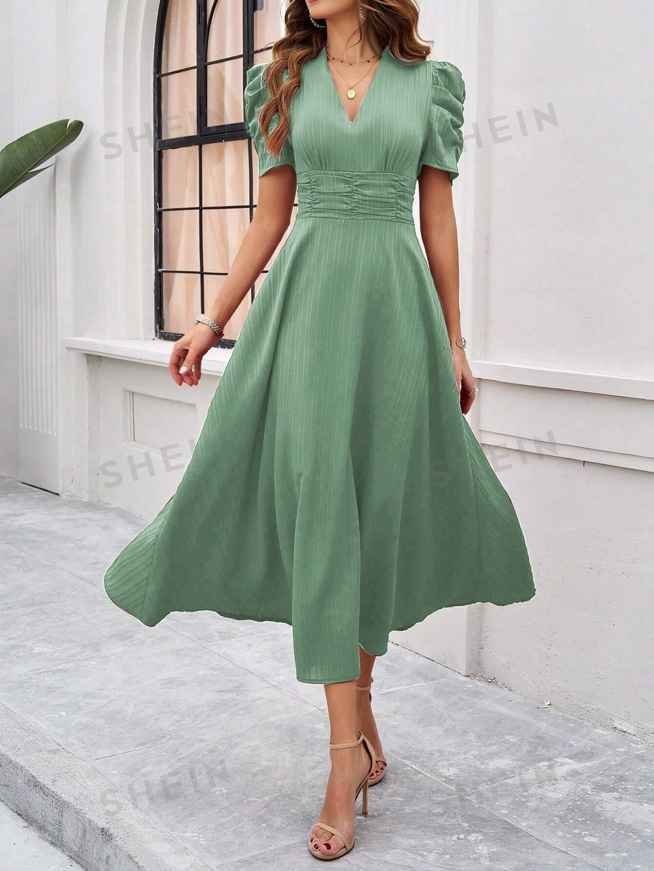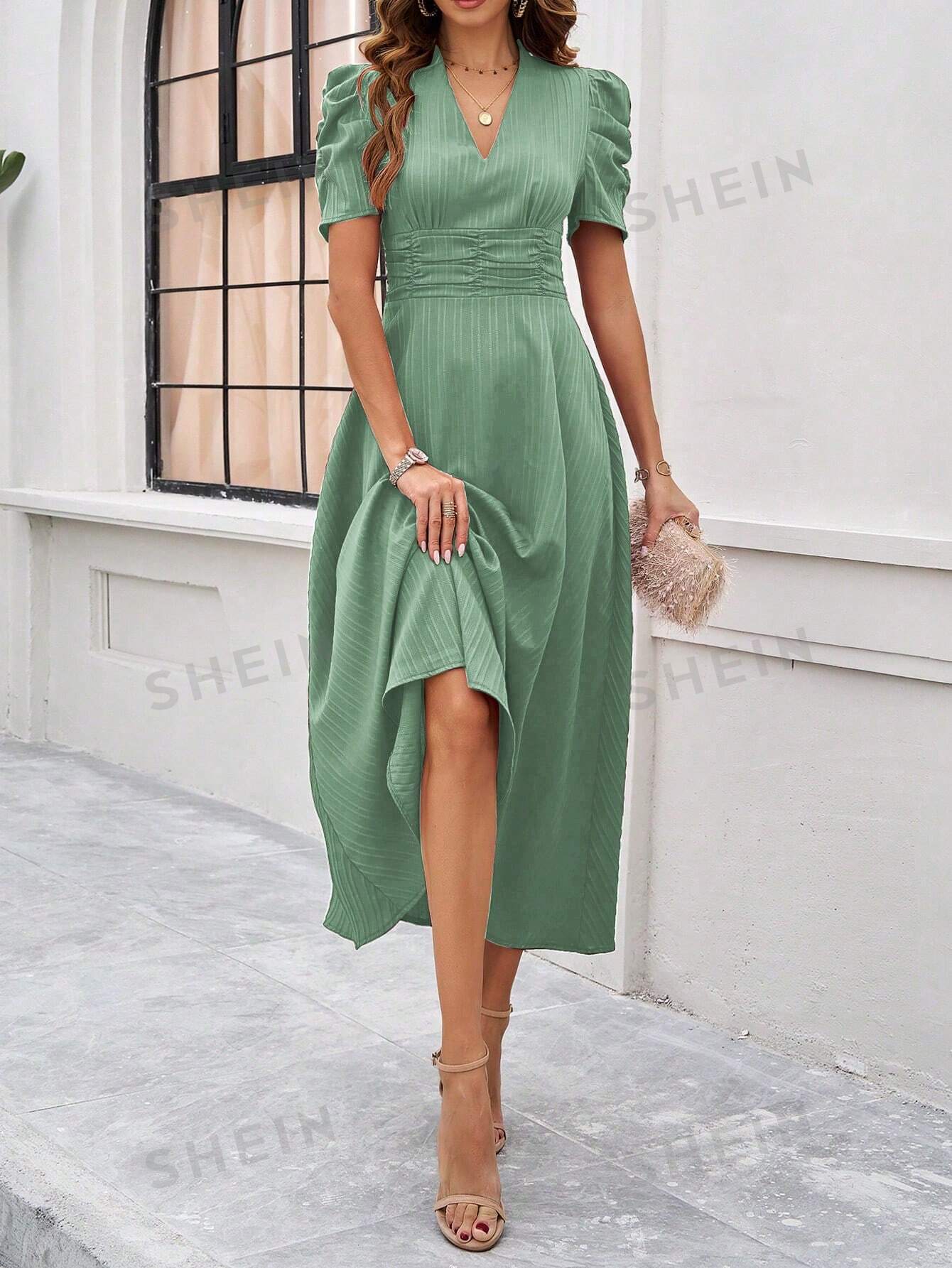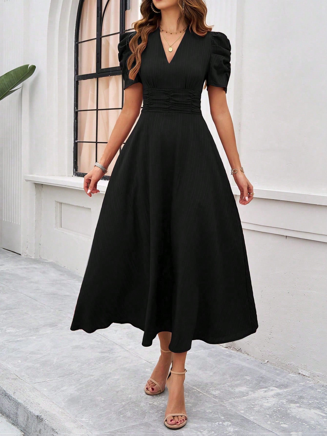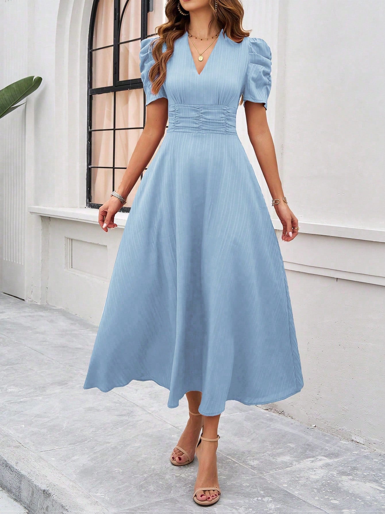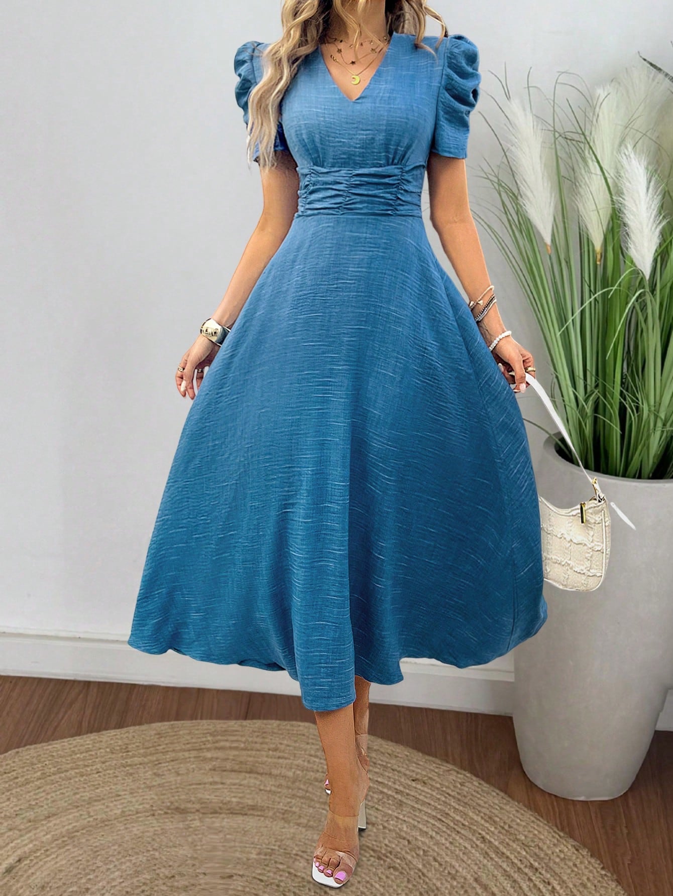 Flirty and Feminine: Women's Puff Sleeve Waist-Cinched Dress